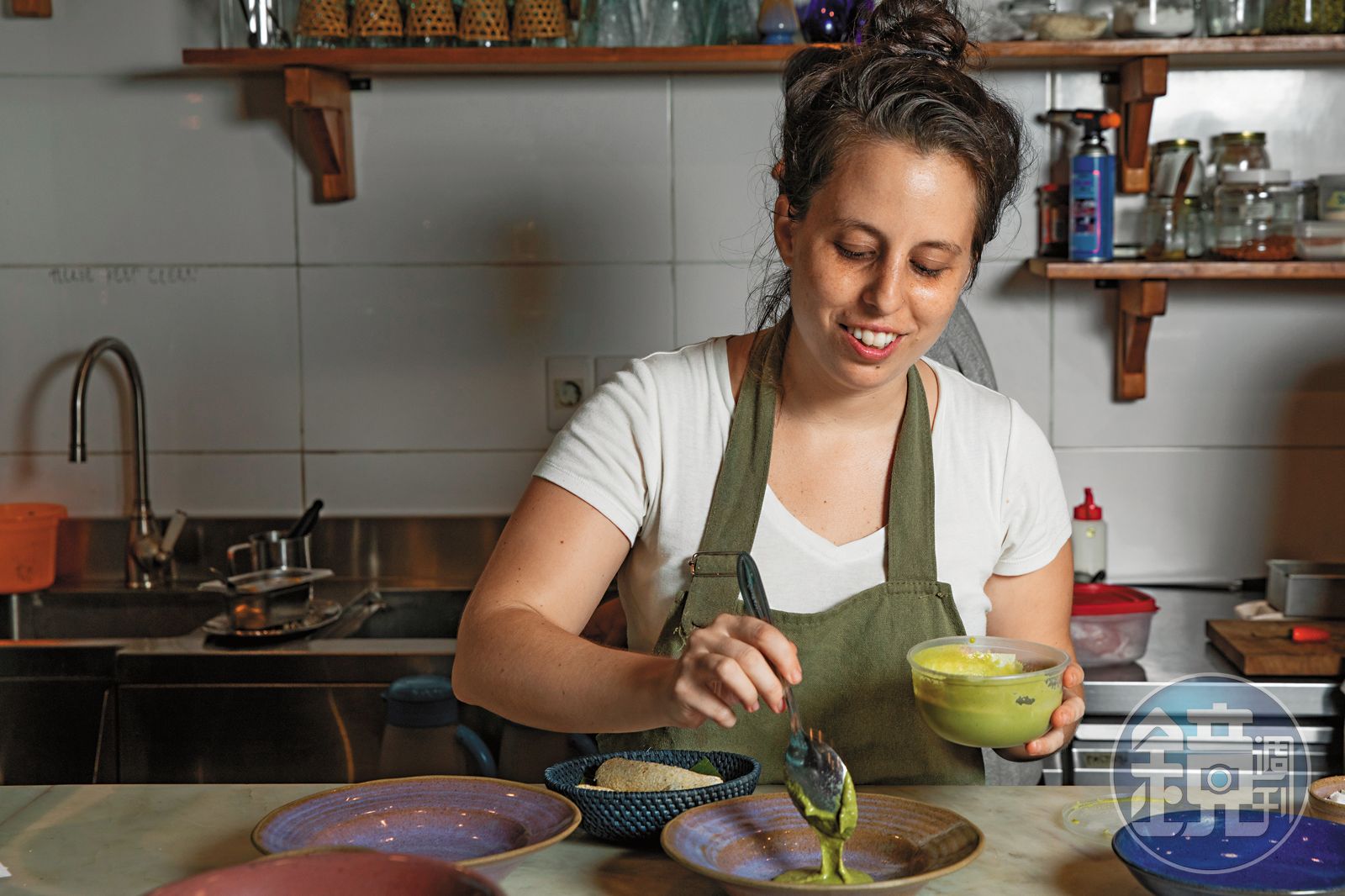 看Estefania Simon做菜真是一種享受。那種感覺像她在廚房跳舞,周遭人全都圍著她共舞。只見她一邊做菜一邊試味道,抿嘴、點頭微笑,輕快地在擺盤上多點變化,然後一揚手,咧嘴大笑,送菜。