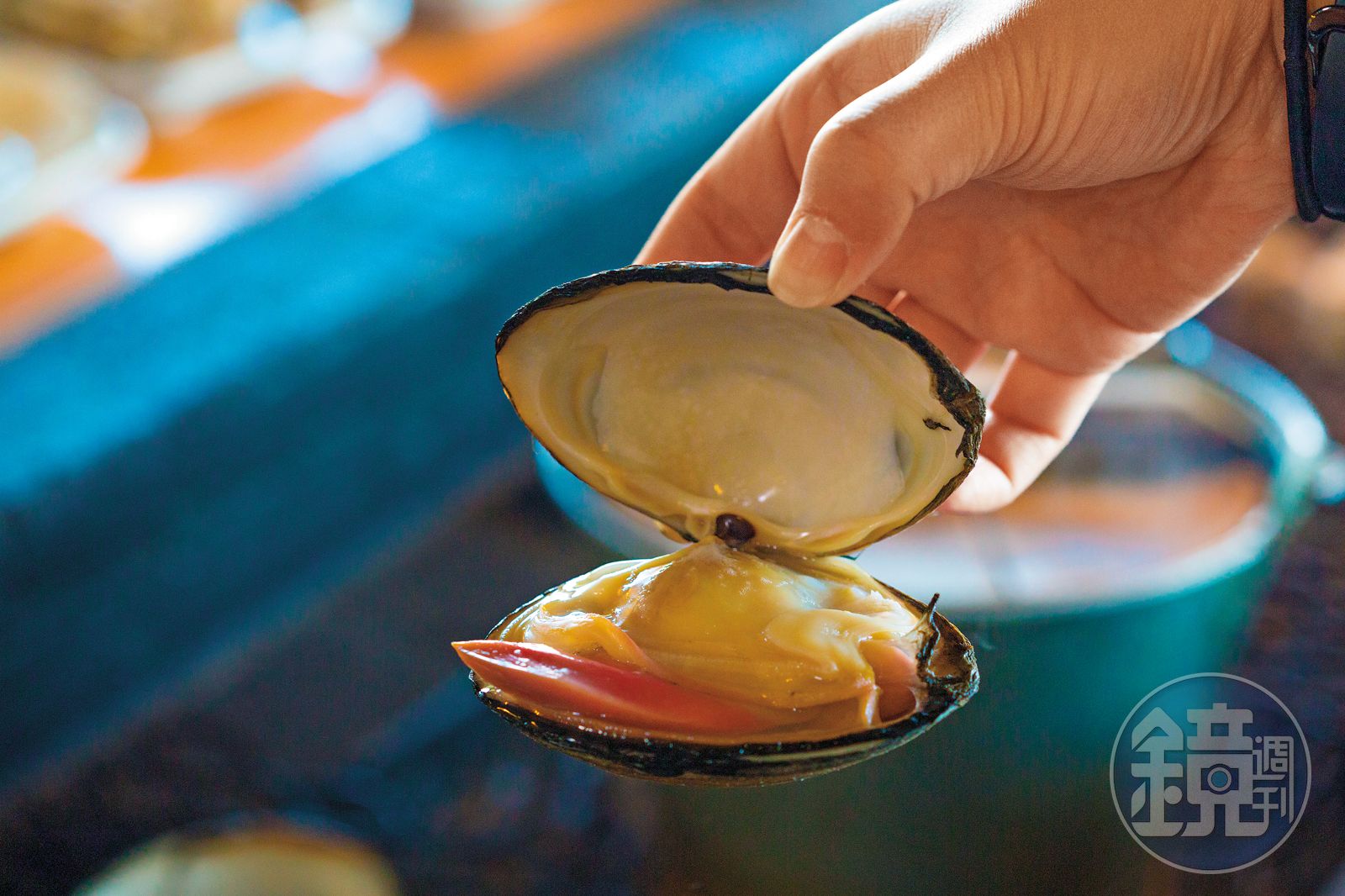 另一頭的「OYSTER BAR」,是義式風格的牡蠣小酒館。這兒的名物是5杯「牡蠣Shot」,有番茄汁配酸奶油、醋海帶與生蛋、日本醋醬山藥、氣泡白酒以及伏特加等5種口味,每杯Shot裡頭都有1顆生牡蠣。一抬頭一揚手,吞下一口生牡蠣,搭上各種調和滋味,比直接喝酒還要爽快。