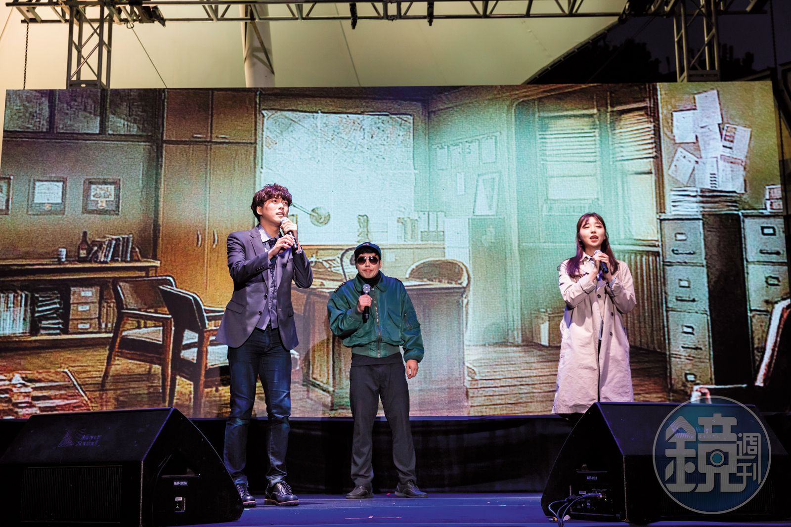 天色漸暗,音樂劇陸續登場,有譜寫初戀的《尋找金鐘旭》、描繪夫妻生活的《只有你》、鮮肉演員領軍的《女神在看》,以及傳統系列《蓮,再次綻放的花朵》《Basilla》,演員們輪番接力演出一小段劇情,大飽眼福的同時,也吊足胃口,讓我直想把女神的一票鮮肉都看完,也好奇女主角到底找到初戀金鐘旭了嗎?
