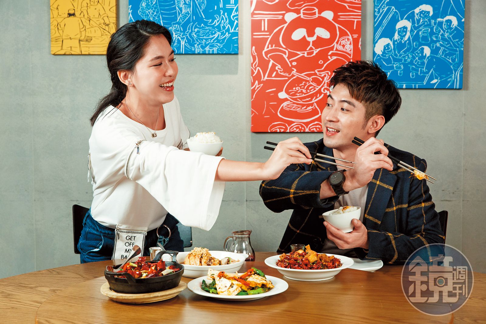 簡宏霖只要到「開飯」,一定會點「翻滾吧!肥腸」這道菜,「大紅袍花椒粒、八角、豆豉、朝天剁椒等爆香,伴上肥腸,真的好吃到爆炸。」看著簡宏霖說得眉飛色舞,張家慧立即挾起肥腸大口吃,「本來以為不會很辣,但後勁超強,麻麻的很嗆口,我都流汗了。」