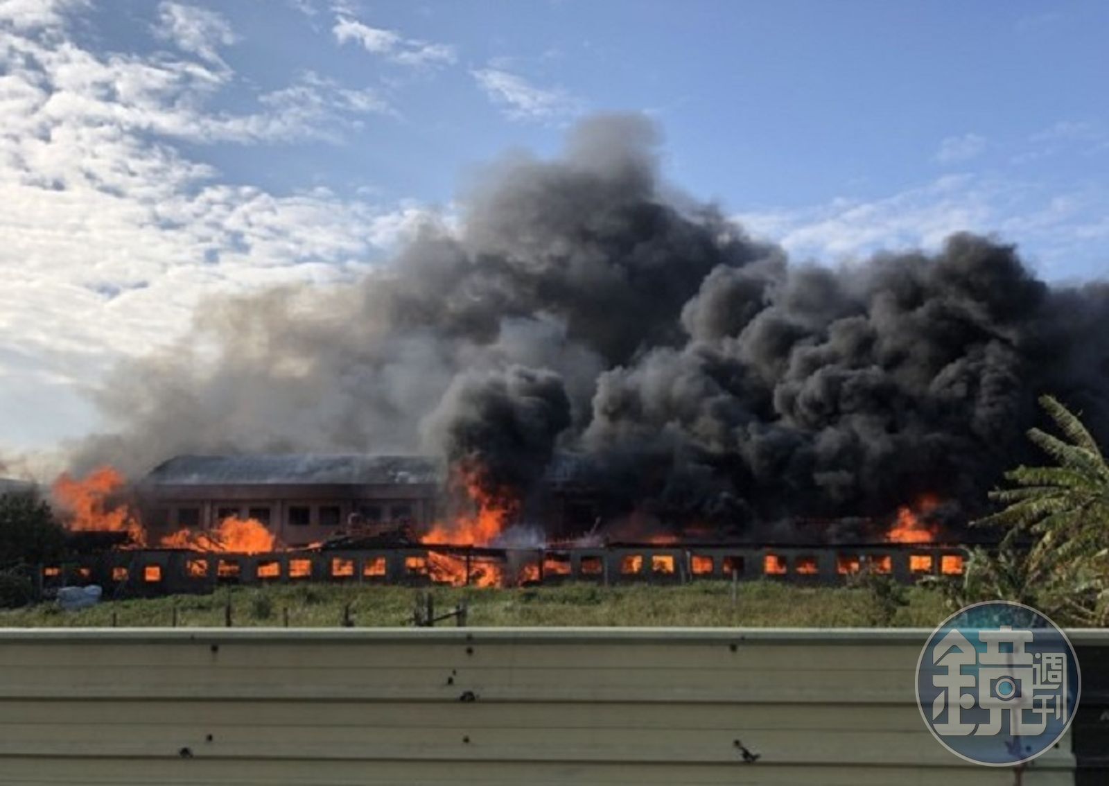 由於工廠是鐵皮屋,廠內又堆積了大批易燃的塑膠原料,火勢一發不可收拾,清理火場時,整棟占地150坪的廠房付之一炬,幸好起火時尚未開工,無人傷亡,算是不幸中的大幸。