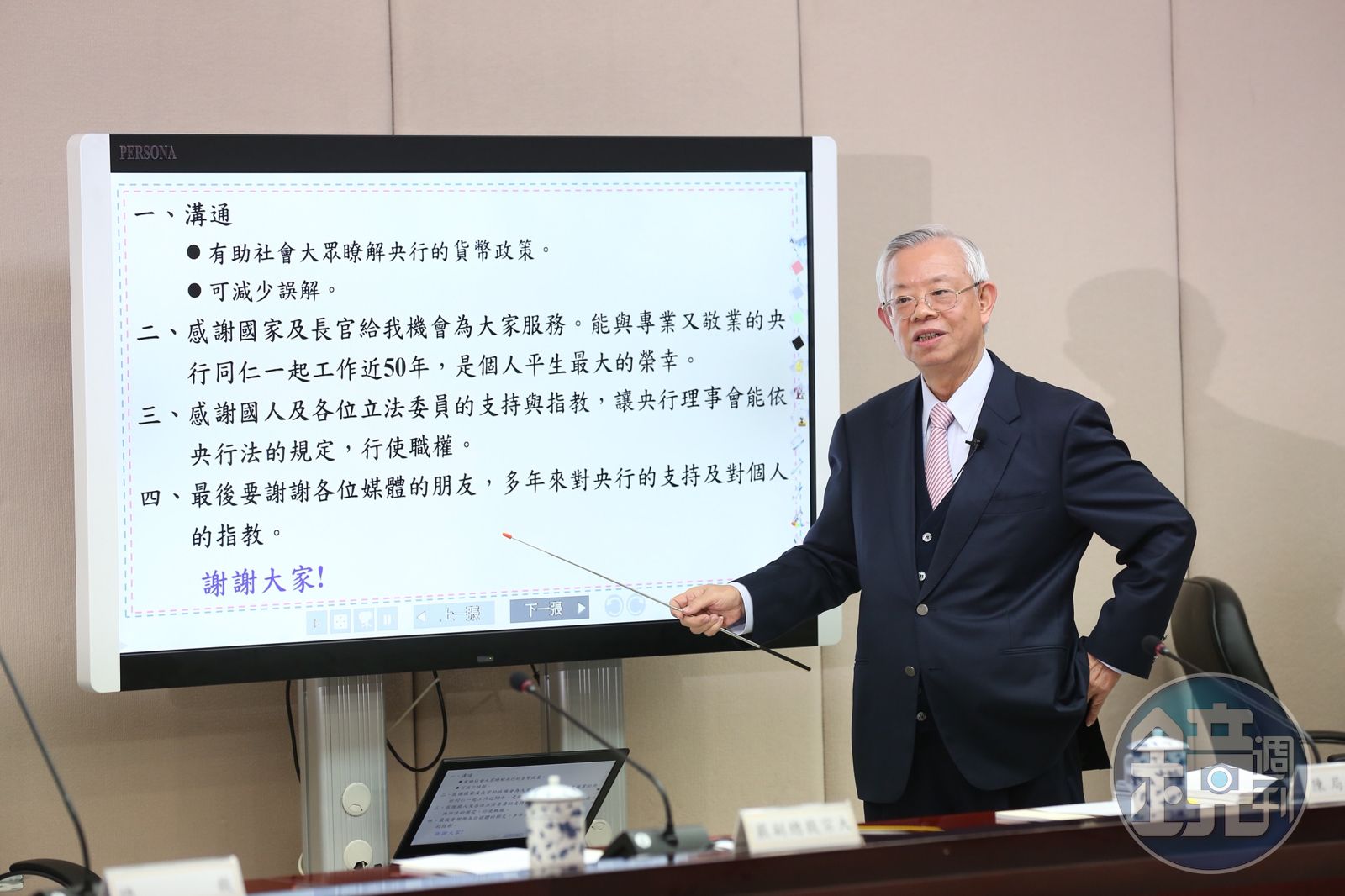 12月21日下午3點不到,媒體幾乎「佔據」了央行記者室,因為這是擁有14A頭銜的央行總裁彭淮南,任內所主持的最後一場理監事會後記者會。光是會後記者會的簡報,學者出身的他就足足準備了48張,從通膨、匯率、薪資成長與物價關係到貿易條件惡化等12項外界關心議題,一條一條仔細回應。