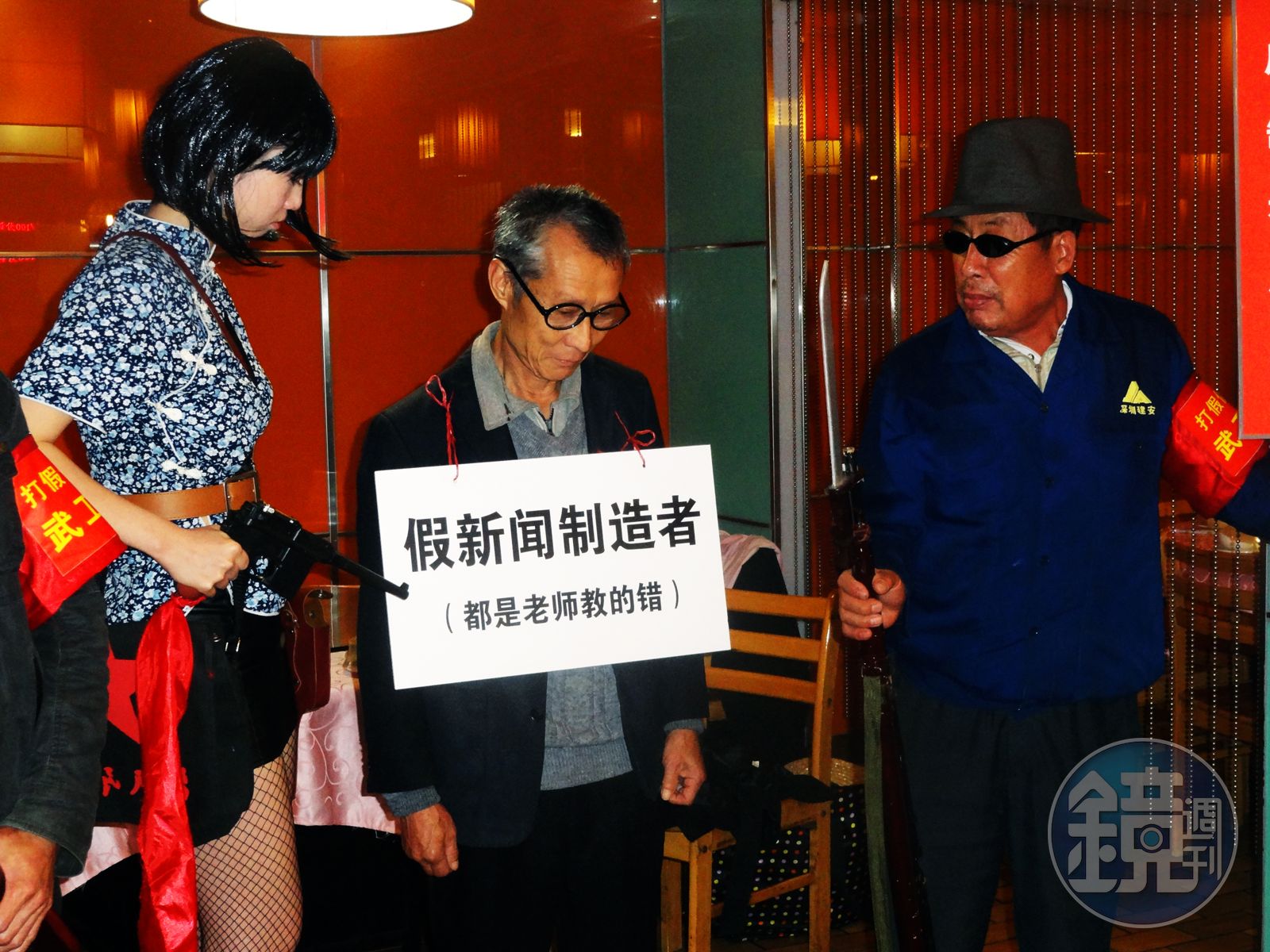 中國的深圳的街頭劇場,由扮演武工隊隊長的張筱雨,公審「假新聞製造者」。(東方IC)發布時間:2017.12.29 11:00 臺北時間