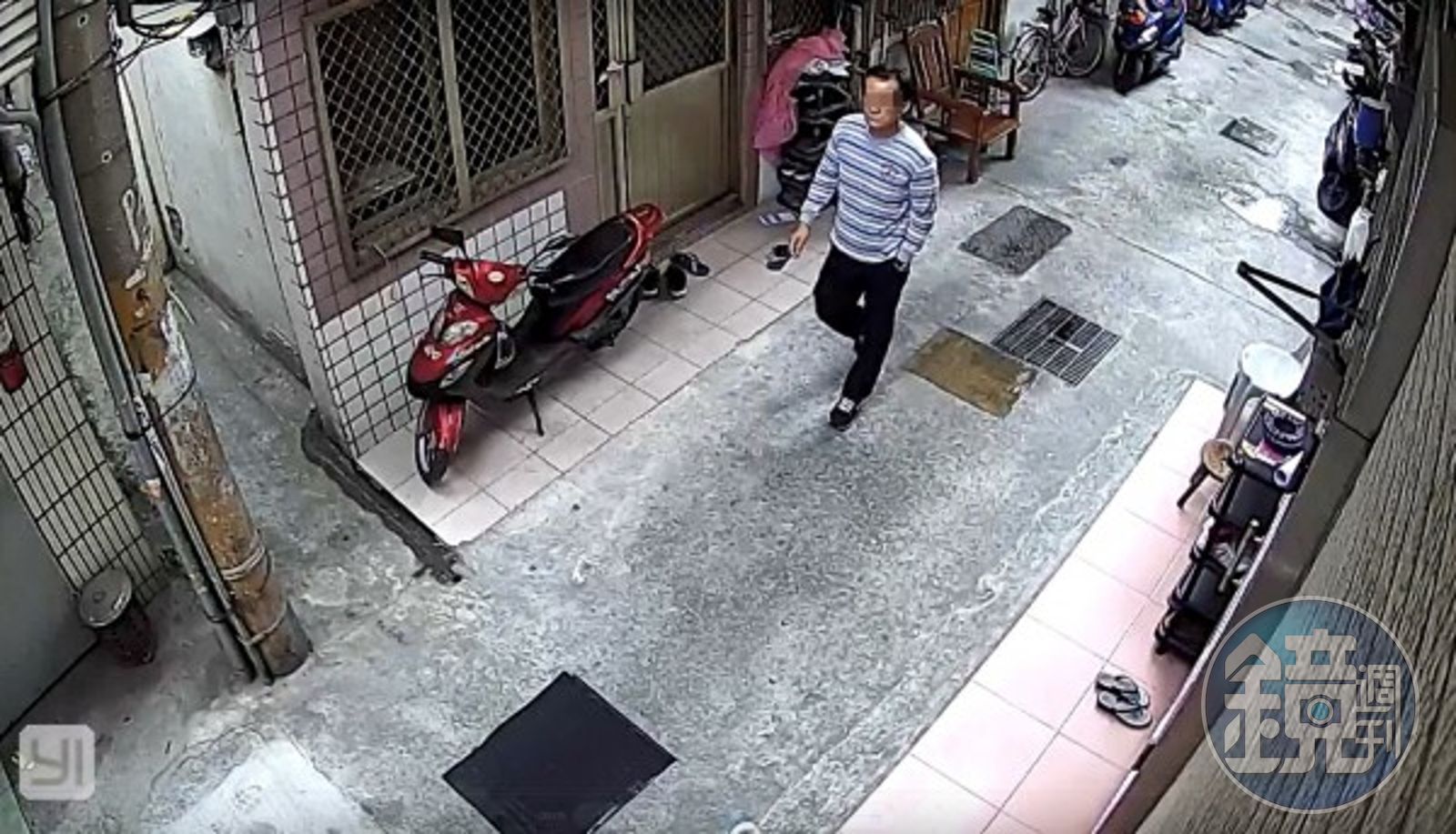 轄區二分局文正派出所獲報,立刻派員到現場查看,除了請鑑識小組到場採證,並調閱周邊所有監視器,剛好隔壁鄰居監視器當日拍到一名身穿條紋上衣、黑色褲子及黑色耐吉球鞋的男子,在竊案發生前,曾不斷在附近徘徊,居民也表示未曾看過該名男子。