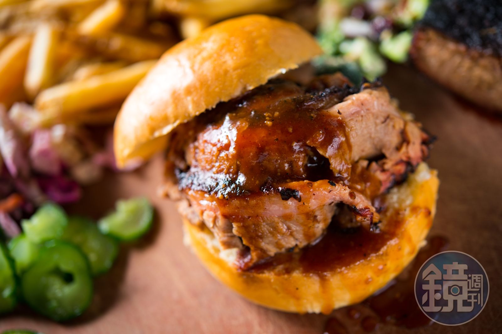 看他答得一臉認真,可見沒在搞笑,卻已讓人不自覺腦補畫面,一吃果然如他形容的軟嫩,配上沿用紐約本店食譜、在台製作的布里歐麵包,B.B.Q燒烤漢堡的慢燻風味,確實獨樹一幟。