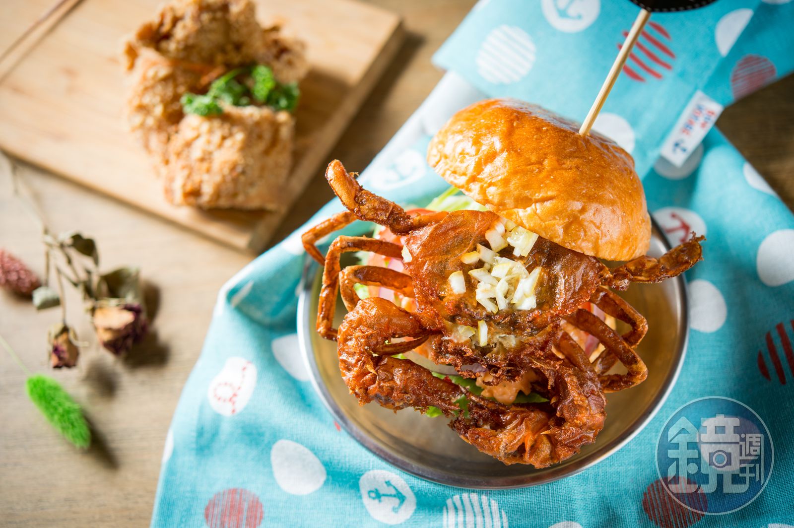 只可惜我沒搭上推出時間,沒機會品嘗漢堡界的狠角色,還好最近店家佛心來著,決定讓過去的紅牌「軟殼蟹漢堡」強勢回歸。整隻軟殼蟹兩面蘸上用鬆餅粉調製的麵糊,入油酥炸2到3分鐘,端上桌,我大口一咬,嘴裡發出咔滋、咔滋的滿足聲,說起來軟殼蟹肉不多,圖的是它的酥香,不會過油,又能保持脆度,在一票多汁漢堡中格外不同,加上蟳味棒、龍蝦沙拉醬、自家醃黃檸檬片,添海味又解膩。另一款「綠咖哩牛肉堡」同樣是限定口味,牛肉上澆淋椰奶、綠咖哩醬汁,微辣口味很對季節感。