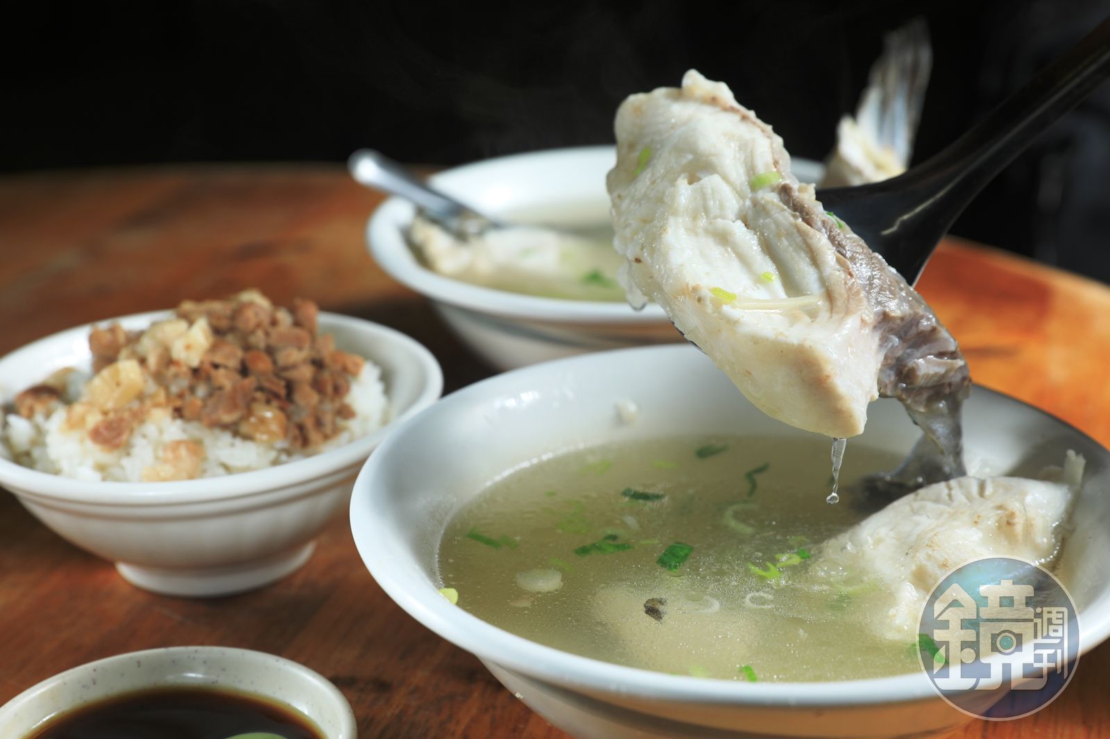 厚切又大片的草魚肉,質地扎實甘美、沒土味,蘸醬吃更鮮。「因為每天凌晨送來的魚都是活跳跳的,然後我們自己殺,品質都顧得到。」吳美梅透露美味祕訣。滾過大量魚頭、魚身的湯頭相當鮮甜,有的外帶客會叮囑「湯多」,拿來當醒酒湯。
