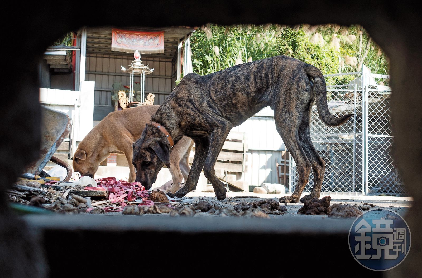 荒蕪平房信箱內的信件多已破損,顯然屋主鮮少在此出入,高2米半以上的鐵籬則難以一窺堂奧,爬上山坡才察覺籬內2黃1黑共3隻高山犬,7個月前這處占地40坪的空地,竟是一座高山犬的煉獄,原本每隻市價曾經高達新台幣百萬元的名犬,下場比路邊流浪狗還不堪。