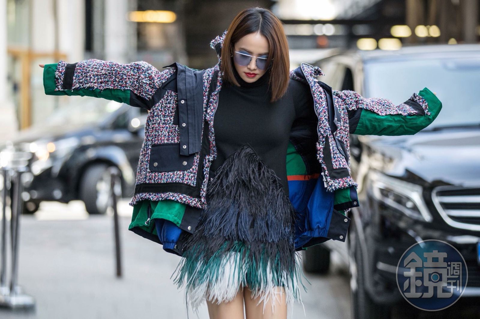 羽毛系列的服裝能成就氣勢也能變LOW,蔡依林在國際時裝周上將羽毛裙,反差搭配外套,呈現矛盾美。(摘自蔡依林粉絲臉書) 更新時間|2023.09.12 20:26 臺北時間