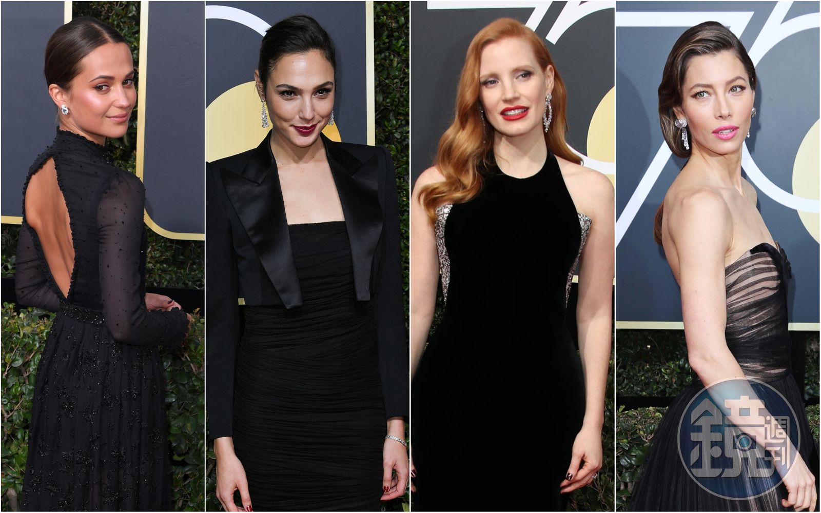 為了呼應去年爆發一連串好萊塢大亨性騷擾的醜聞,今年出席金球獎的明星不約而同都穿著黑色,代表對受害者的聲援。