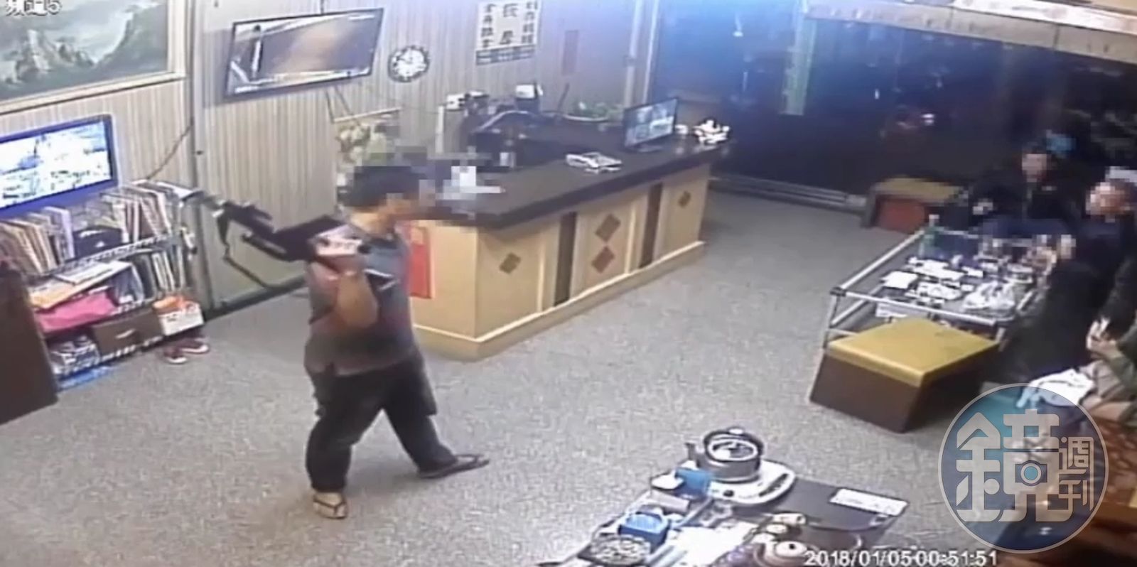 8日晚間,警方接獲情資,掌握張姓主嫌出現在女友租屋處,隨即圍捕,當時張嫌一看到警方出現,隨即取出背包內已上膛的手槍欲射擊員警,連手指都已伸進扳機護弓內,想不到員警以衝百米的速度衝刺,一人控制張嫌持槍的右手、一人控制張嫌頸部,一人飛撲將張嫌撲倒,完全不畏懼張嫌身高近190公分,體重近百公斤的體型優勢,隨後員警一湧而上,硬生生地將張嫌的手指從扳機護弓中扯出奪槍成功,張嫌才未能射擊,逮捕過程相當驚險,張嫌被逮後還一度嗆聲要警察打死他,態度相當囂張。警方也在張嫌背包內起出改造手槍1把,子彈53發,並循線起出鋼管霰彈槍1把,槍管2支。警方後續也兵分多路將其他5名犯嫌緝捕到案。