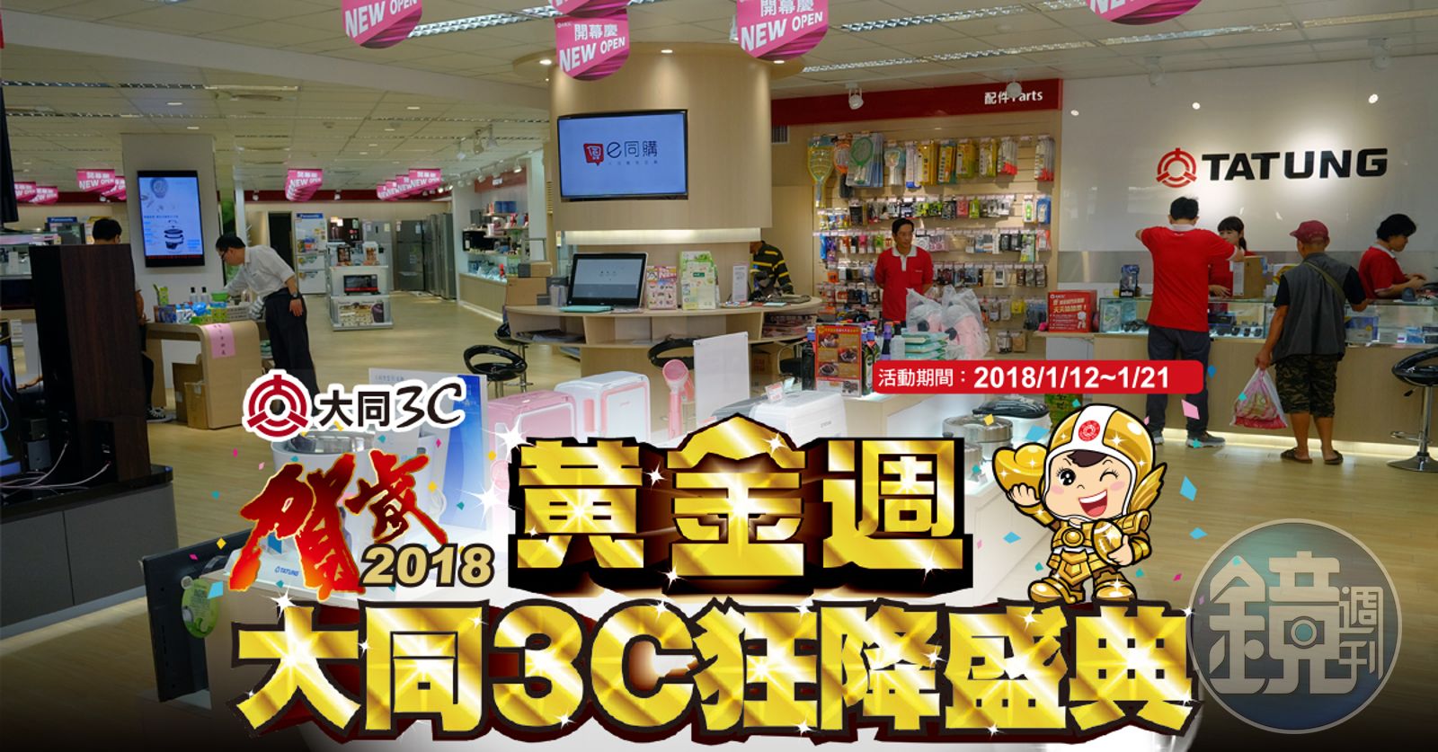 今日登場「大同3C黃金週狂降盛典」,精心挑選各式貼心家電下殺折扣,讓你輕鬆除舊佈新過好年!此外,活動期間來門市消費滿額,天天抽大同變頻超薄對開冰箱,再贈中獎率100%黃金刮刮卡,年終購物補助金最高送28,888元。此外,還有大同與「可口可樂」跨界合作推出「可口可樂™×大同」聯名不鏽鋼電鍋,可愛爆棚,大同電鍋鐵粉和可樂迷推薦必收。