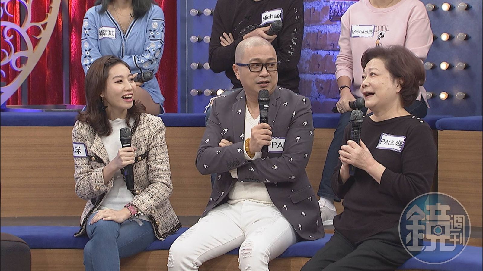 吳宗憲在節目中先恭喜Paul與咪咪喜獲女兒,話鋒一轉馬上對Paul媽說:「這是一個大問題,沒有男生?」Paul媽笑稱沒關係,「再生就有了啦!」讓今年將邁入45歲的Paul聽聞後,搖頭大喊:「不要再生了!」還自嘲是「風中殘燭」。但Paul媽認為咪咪與兒子都還年輕,2人再拚一胎沒問題,孝順的咪咪聽到婆婆的心願後,也向婆婆表示:「會再生一個男生給妳!」讓主持人Sandy心疼咪咪給自己太大壓力。