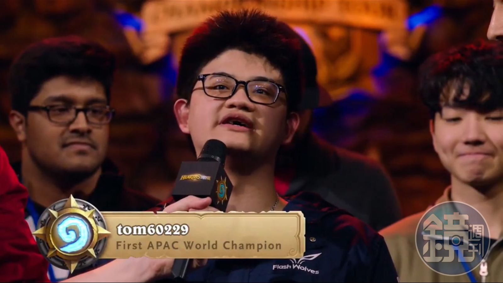在台灣時間21日晚間開打的四強賽中,陳威霖先是對上韓國好手Surrender,以3:1的比數闖進總冠軍賽。面對美國Fr0zen,陳威霖前兩局一度陷入劣勢,以0:2處於絕對落後的狀態。但接下來他調整狀態後,第三局先是迫使Fr0zen投降,第四局把Fr0zen打到血量歸零,把比數逼到2:2,進入決勝局。最後一局陳威霖持續穩定發揮,反倒是Fr0zen在後期犯下致命失誤,最終陳威霖上演超級大逆轉,以3:2勇奪台灣第一座《爐石戰記》世界冠軍。