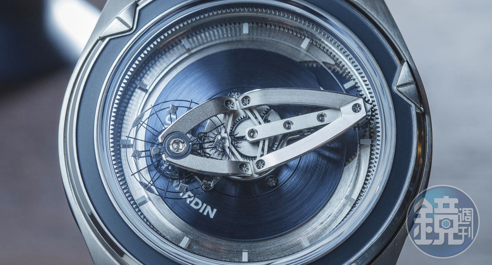 ULYSSE NARDIN雅典錶是鐘錶製作領域中的創新先鋒,不僅是因為對矽材質的研發及設計,早在2001年推出首枚《奇想陀飛輪》時,已經將矽材質運用在高級腕錶之中。現在,雅典錶更進一步大膽推動矽材質技術,加入另一個專利發明,利用堅硬的鎳元素製作出驚人的極輕平衡擺輪,並加入靈活的矽材質微型穩定槳葉來穩定擺輪擺幅,能有效的提高擺幅擺動的準確度。