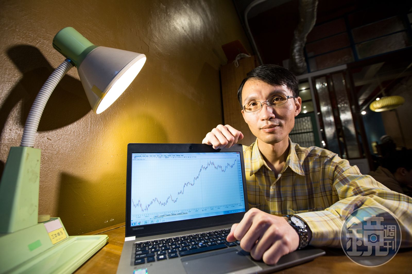 打開電腦,他秀出歐元兌美元長期走勢圖,滔滔不絕了起來,「首先,以宏觀週期來看,每隔12~16年半左右,歐元兌美元就會有1次最高及最低點出現。」而這兩次歐元低點分別出現在2000年10月,以及2017年初,對照美元去年大跌,吻合這樣的宏觀週期。