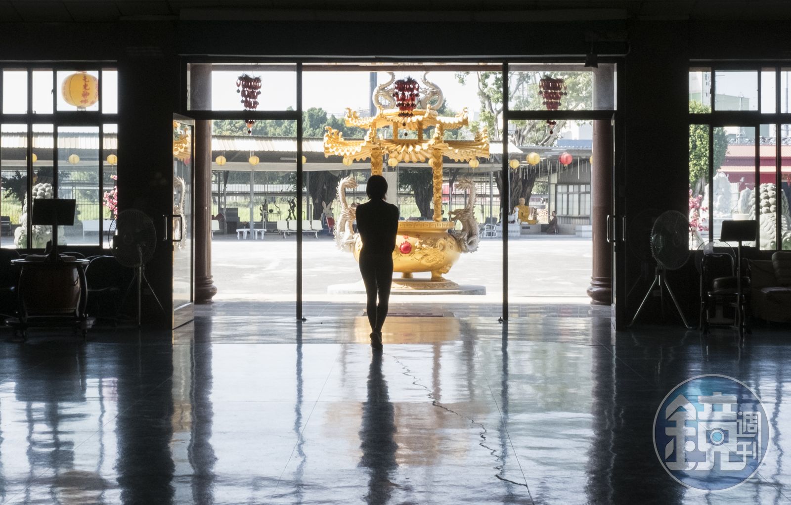 入口在佛堂後方,進入前先經過龍發堂的辦公室。「目前我們只出不進,未來政府繼續介入的話,可能所有人都會送出。」龍發堂的行政祕書對每一位來探望親人的家屬這麼說,並提醒家屬,未來需要另尋可收容家人的地點。