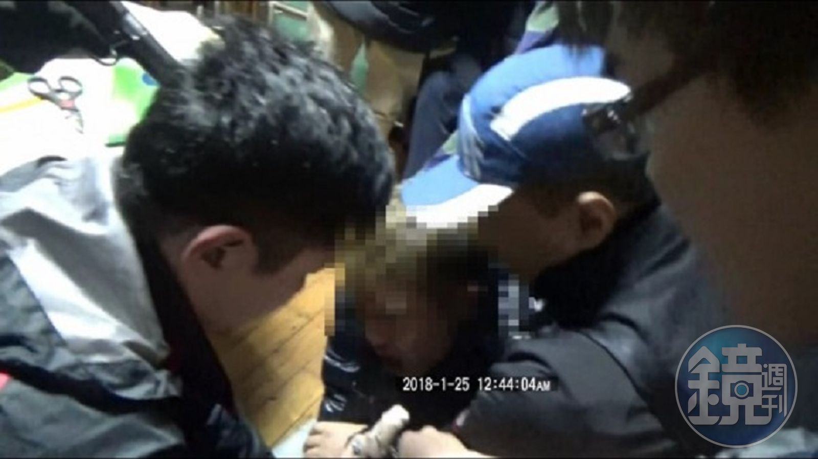當他從3樓安全門逃竄時,與警方狹路相逢,凶狠的黃嫌立刻將手進斜揹在側肩、藏放槍枝的包包裡,眼尖的員警見狀,驚呼提醒同僚:「小心,他要開槍!」在這危急時刻,有一名勇警撲上前去,以身體壓制黃嫌,同時也把手身進對方的包包裡,壓制嫌犯那隻已經握緊槍枝的手,經過十幾秒的較勁,嫌犯力乏鬆手,員警順勢「卸彈匣」,化解近距離槍戰駁火的危機,所有幹員也鬆了一口氣。