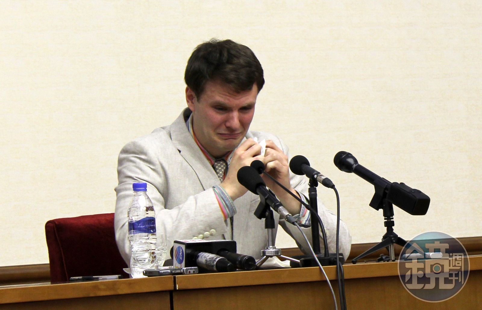 「我懇求你們看看,我只是凡人。」來自美國維吉尼亞的大學生奧圖・瓦姆比爾,2016年在平壤法庭審判中滿臉是淚。他承認自己「犯下了生命中最嚴重的錯誤」。