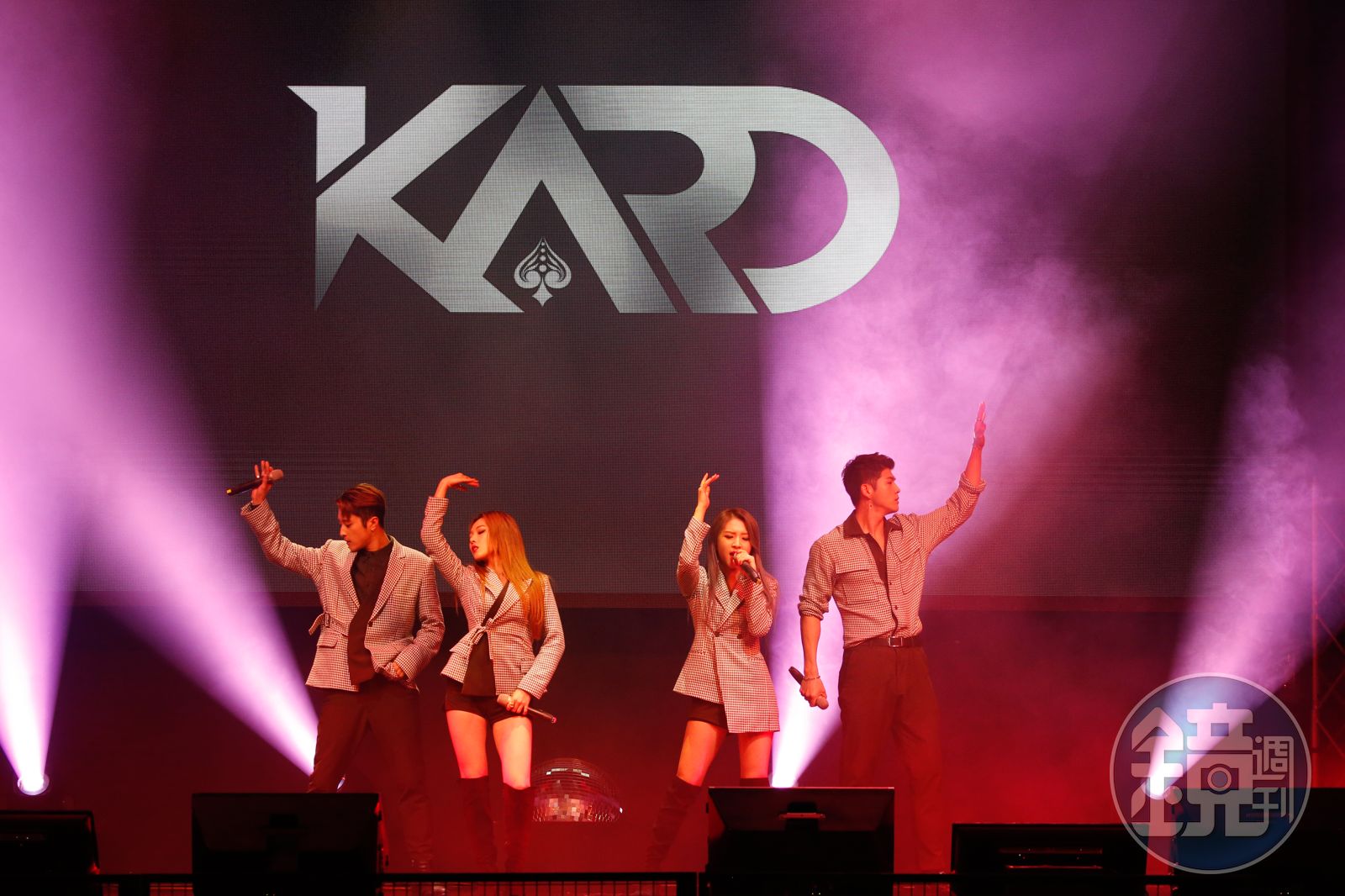KARD全場表演〈INTO YOU〉、〈TRUST ME〉、〈HOLA HOLA〉等總共15首歌曲,昭旻表示在韓國上飛機前很緊張,擔心表演有多少人來?大家會不會喜歡?但是站上舞台後,感受到粉絲的熱情應援,緊張也隨即消失,與粉絲約定下次會再來台灣跟大家見面。KARD預計週六離台,班機不公開。
