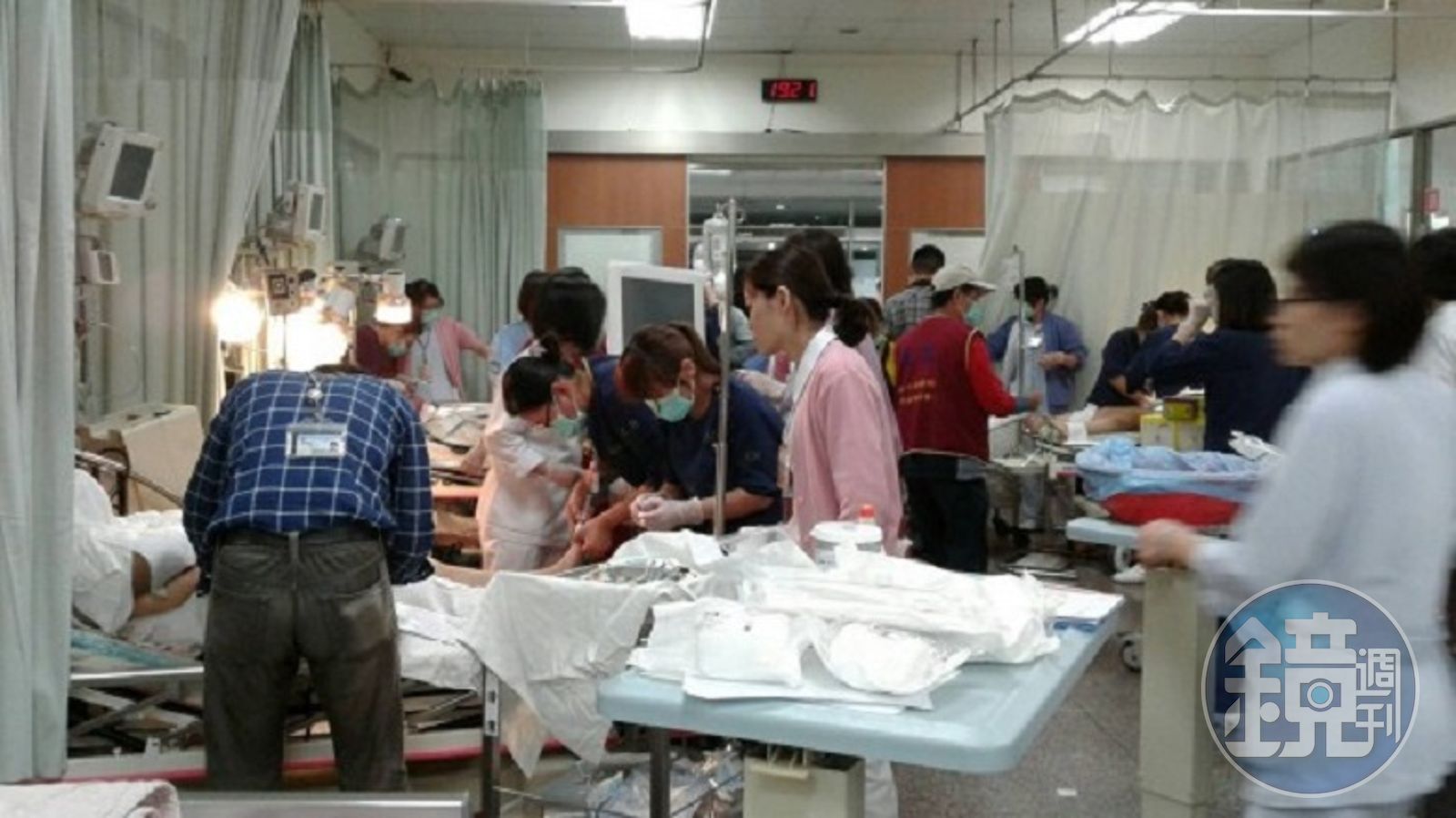 當氣爆發生消息傳出,距離災難現場最近的小港醫院於晚間六點56分啟動大量傷患收治,緊急召回醫護人員,傷患陸續被送來,急診科主任吳怡泰指揮醫護進行檢傷分類。