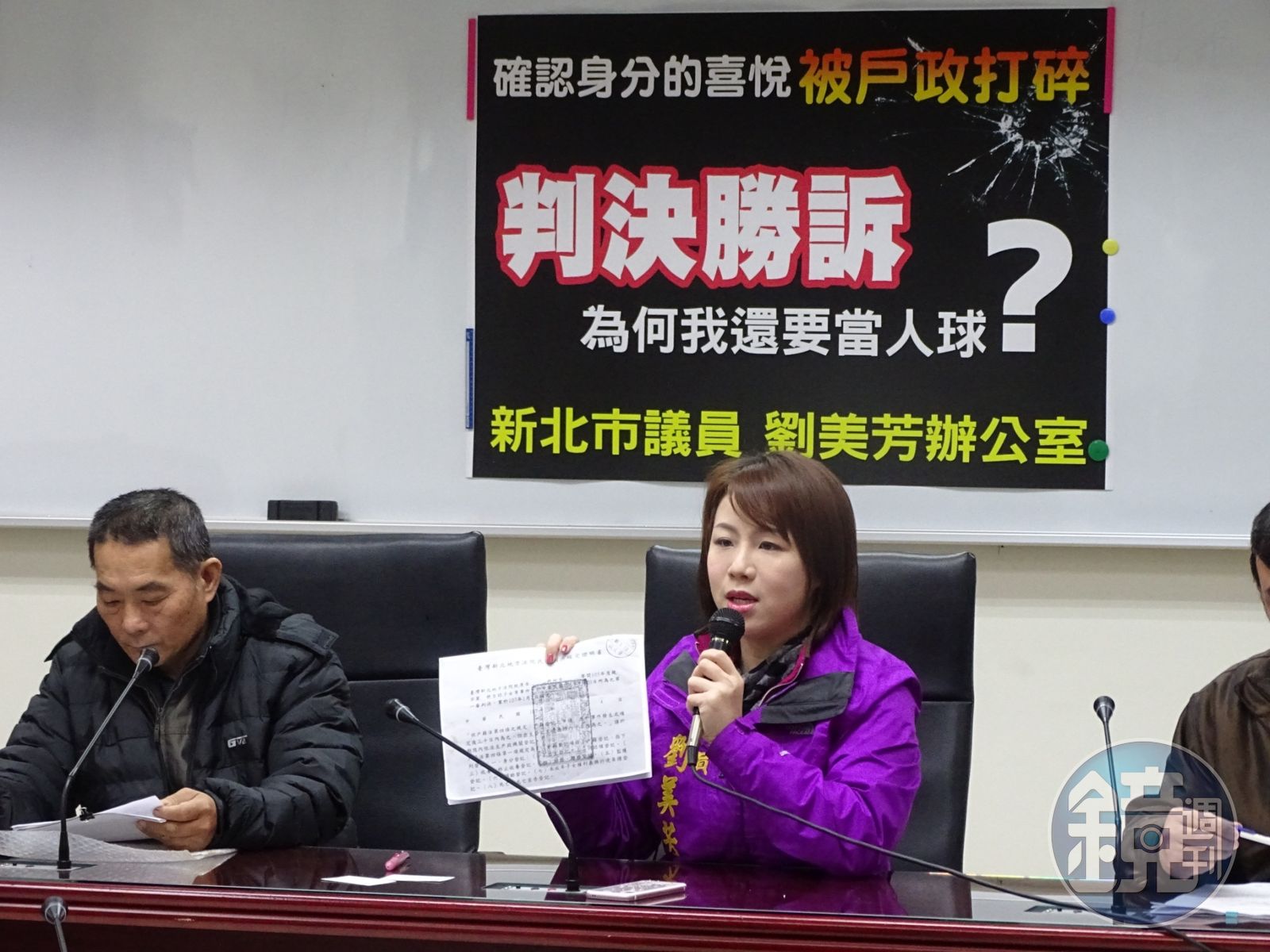 新北市議員劉美芳於2日陪同小寶父親老松召開記者會,劉美芳會中強調,政府機關對外籍移工的管理輔導不夠周延,才會衍生後續黑戶寶寶安置照顧、身分認定等問題;而戶政機關更無視確定判決,拒絕民眾戶籍登記,不僅與內政部意見相違背,更重要的是孩童的權益遭到漠視。會中她要求新北市政府民政局、樹林戶政事務所等單位,應立即解決小寶的戶籍登記問題,讓他能早日回歸正常生活。