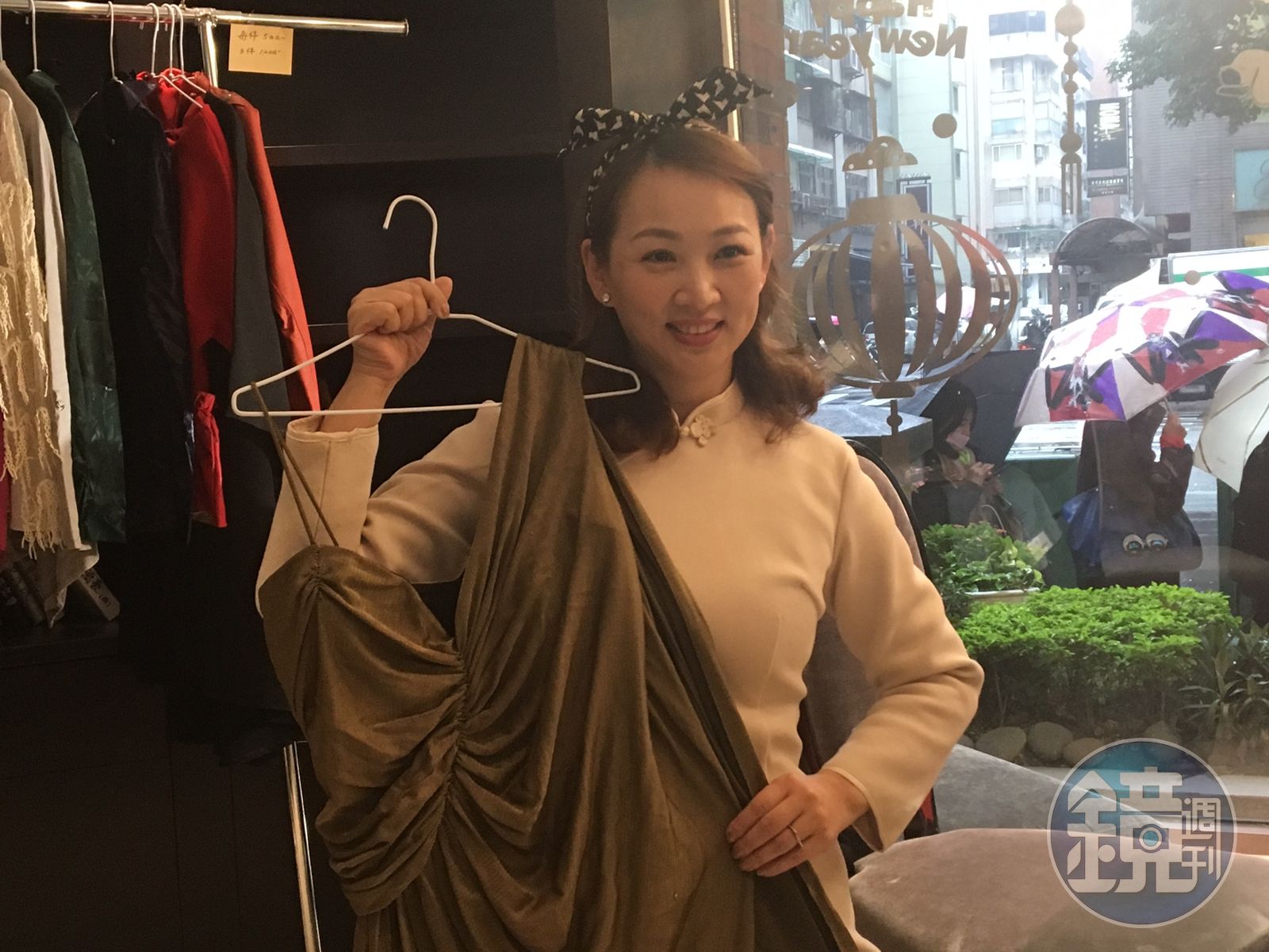 郁方自己也特別挖出一直捨不得捐的「Alexander Wang」羅馬低胸禮服戰袍,是以前上《綜藝大哥大》時穿過的,原價要5萬多元,今天只賣3千,算起來是0.7折的超低價,她哀怨說胖了穿不下,想留給女兒但又才五歲,希望買到的有緣人能好好珍惜。