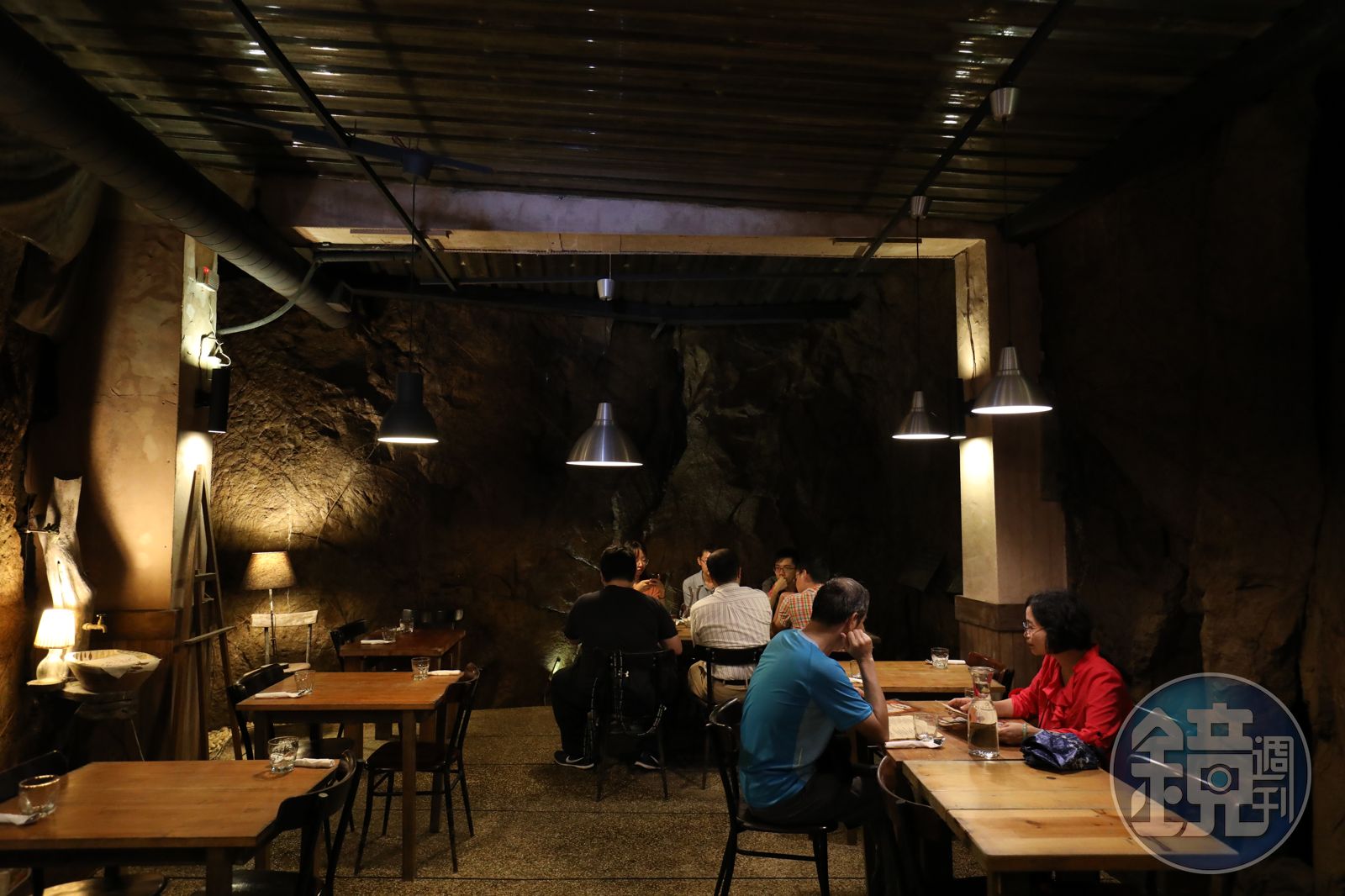 坐在洞裡,粗獷的岩壁肌理充滿張力,榕樹氣鬚悄悄探向桌旁,吧檯緊挨著山壁弧線,洞頂垂掛一盞盞吊燈,流滲摩登又原始的氣味,混合著濕潤的海風,這是基隆港都獨有的味道。