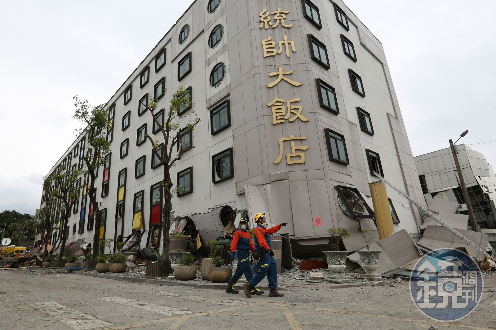 搜救人員趕到現場時,統帥大飯店嚴重倒塌傾斜。