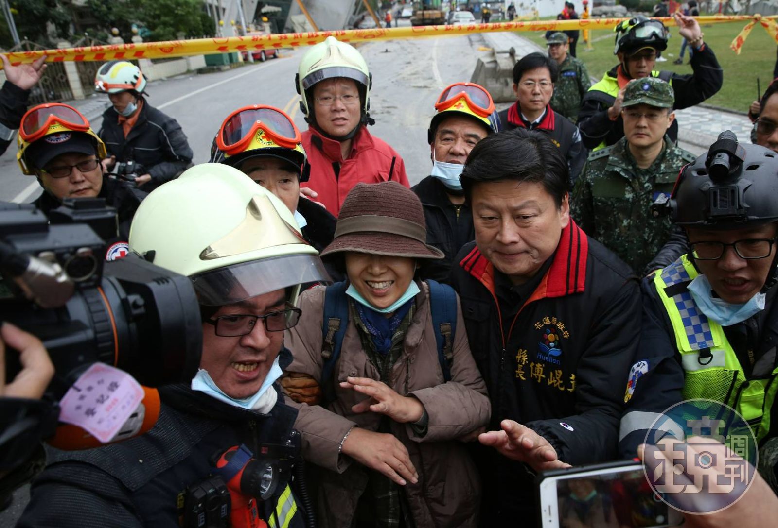 據了解,新北特蒐大隊在該社區以生命探測器搜尋,發現3個生命訊號,但生命訊號被埋在瓦礫堆中,須待該大樓加固後才能進行救援。 9時52分,花蓮縣雲門翠堤大樓,地震搜救指揮官回報,北市搜救隊與紅十字會人員於雲門翠堤大樓9樓之5救出1名民眾(韓籍、金姓、58歲女性),意識清楚,無明顯外傷,尚在檢傷中。