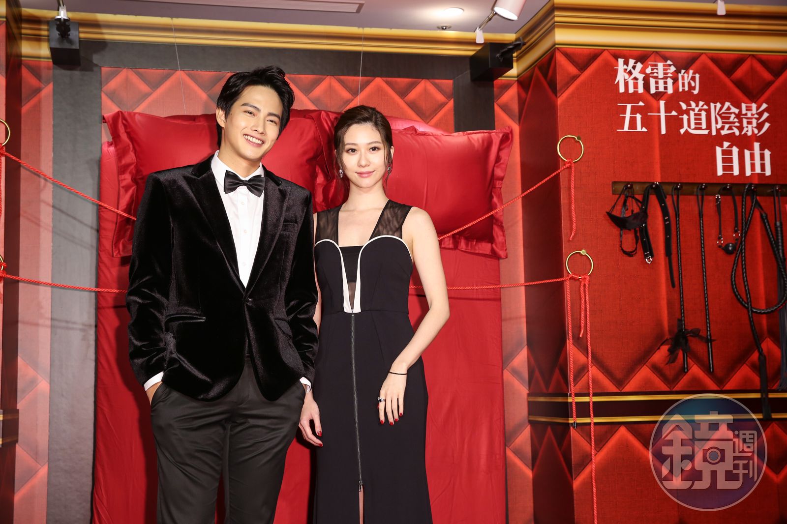 打扮成格雷風格的錦榮,提到對於電影的深刻印象,「就跟大部分人一樣,就是『那些』,不用多說。」意思就是那些各式各樣的床戲花招,歎為觀止。他笑稱片中格雷追求女生,使出搭飛機看夕陽的招數,「現在的我還沒有飛機。」所以還要等到有飛機那天,才能跟他看齊。不過他認為最好的追求女生招數,就是把心意表達出來就對了。