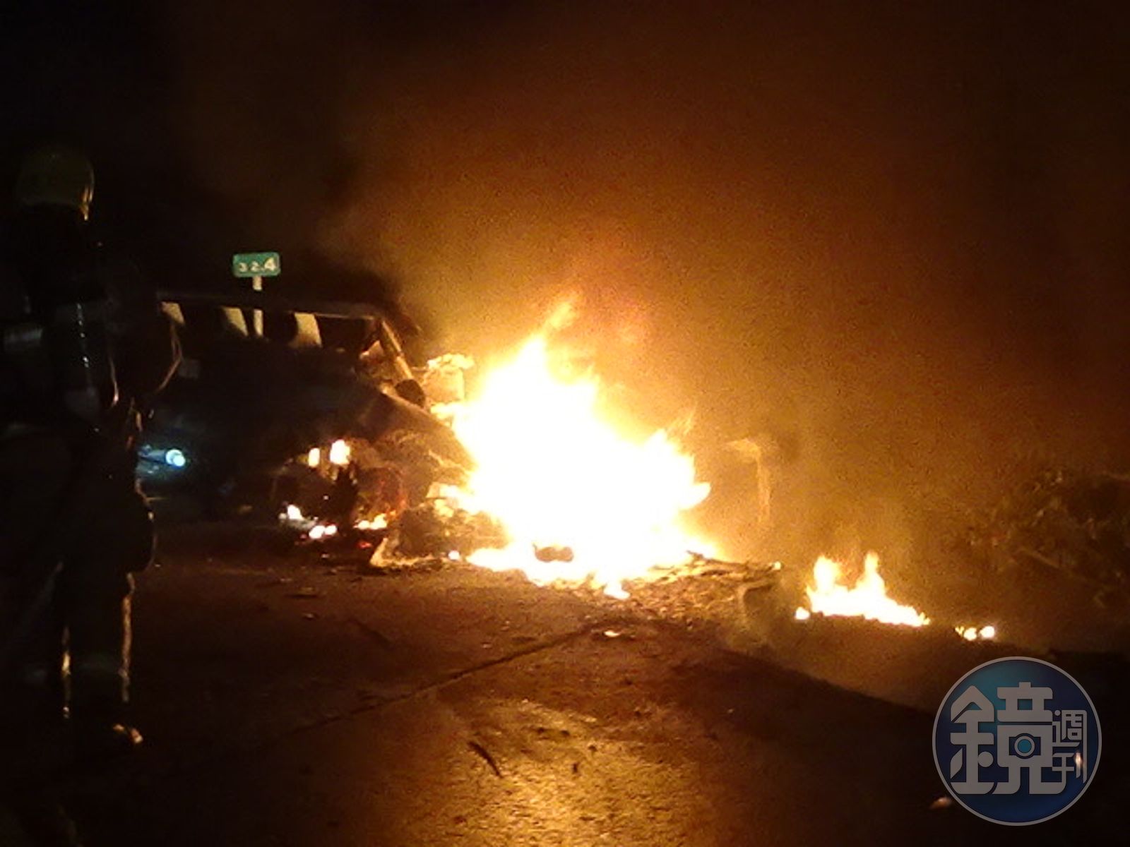 保時捷國道自撞護欄起火 駕駛當場燒死