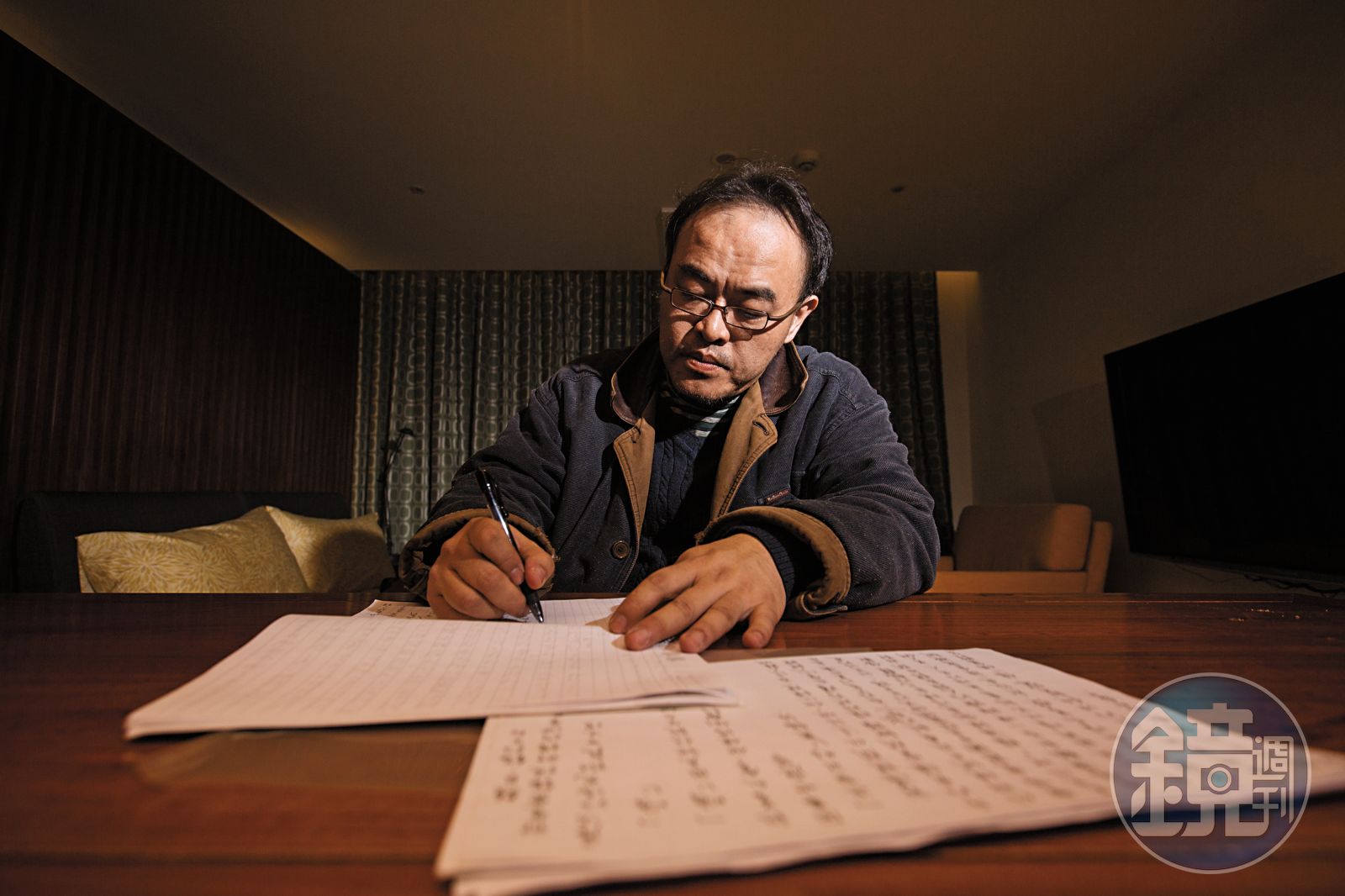 粗眉大眼的小說家駱以軍,難得走出永康街咖啡館,來到大樓林立的台北車站,參加本刊自製電視節目《鏡相人間》錄影。他一頭亂髮神情疲憊,走進地下室,發現攝影棚旁正好有房間,床鋪浴室書桌一應俱全,長期憂鬱失眠又暴食症纏身的他,昨晚依然沒睡好,「不好意思,我先睡一下,錄影要開始再叫我。」便在陌生的房間睡著了。