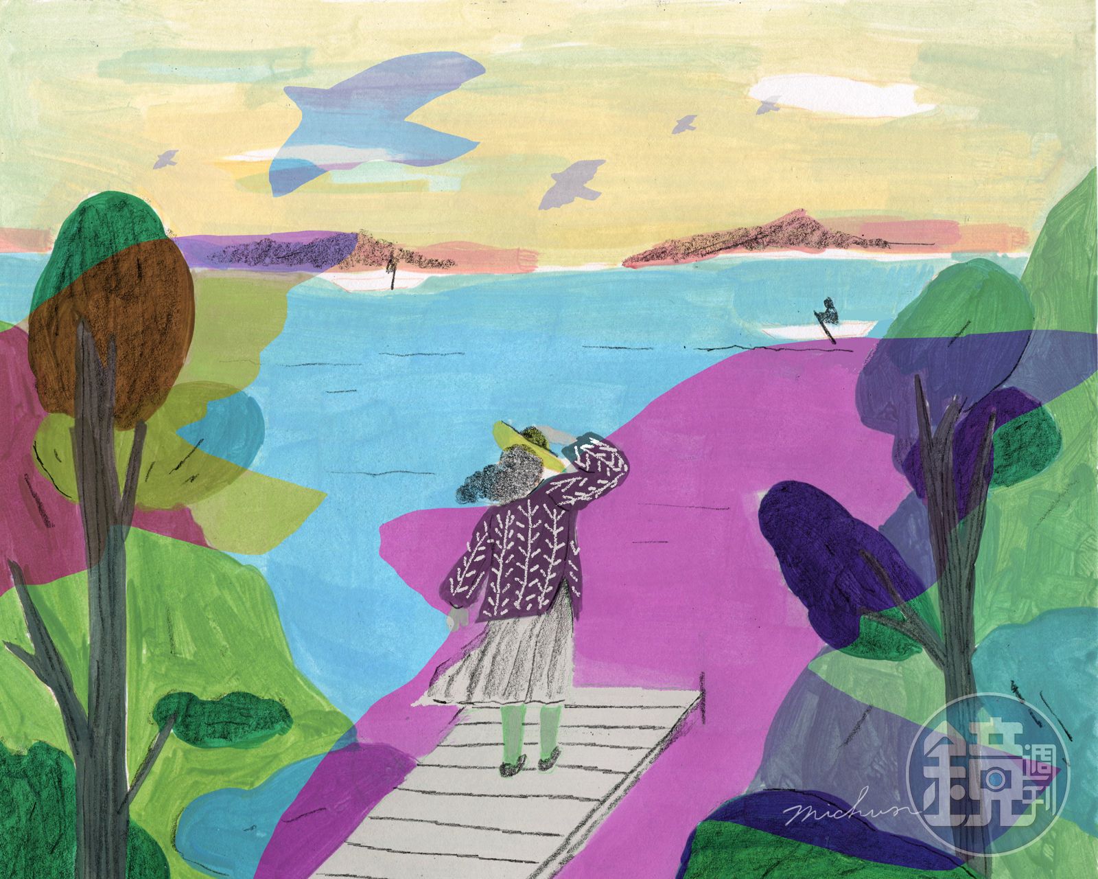 向一條河流的水面,暈開