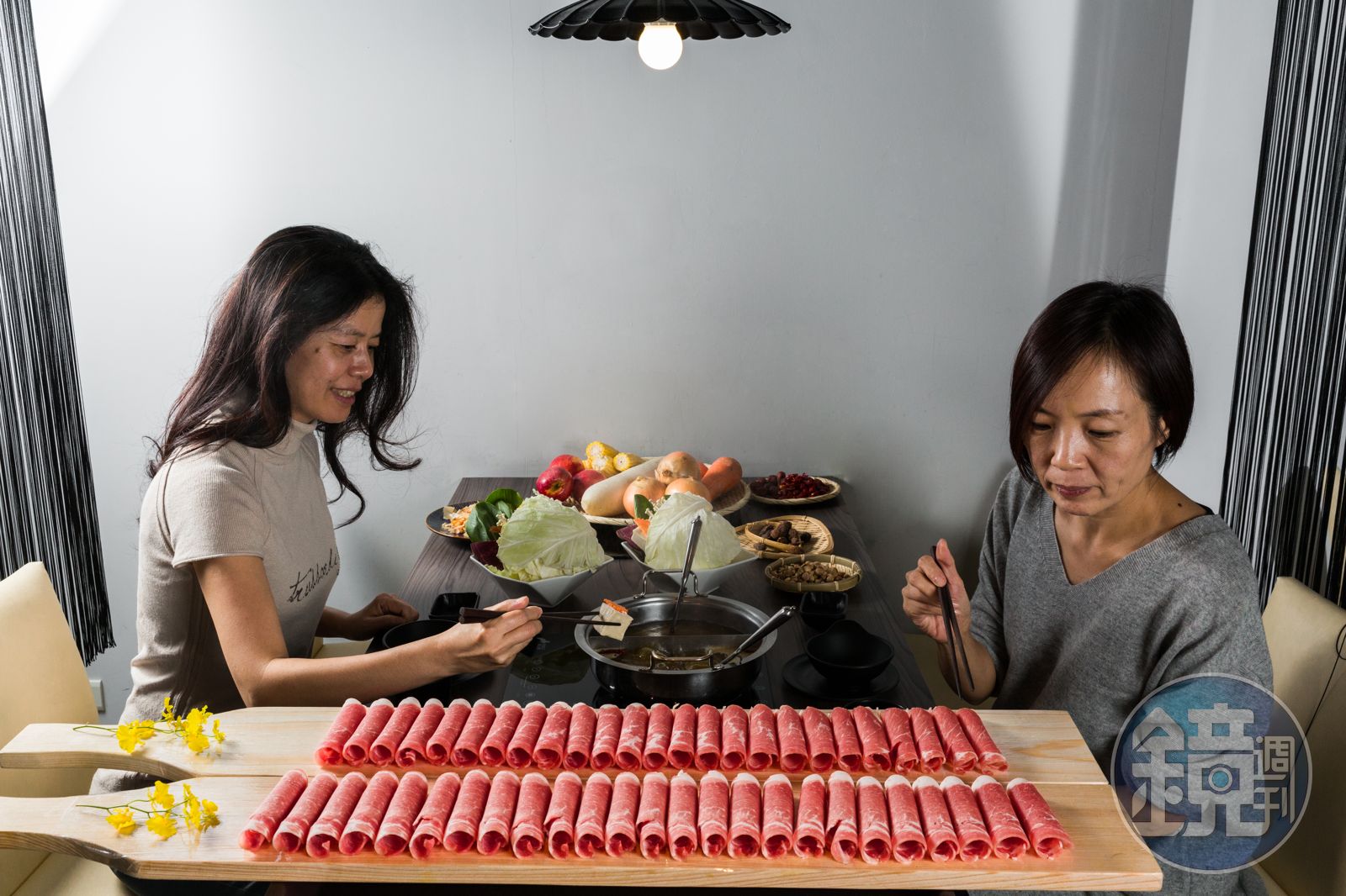 這兩年火鍋吹起一波風潮,就是肉盤一定要超浮誇,好像要表演暴龍餵食秀似的,「花敦道鍋物」就推出「50大板雙人套餐」。兩個比手臂還長的木盤,擺著50片、重30盎司的西班牙梅花豬,肉量相當驚人,但擺盤賞心悅目,用蔬菜柴魚湯涮著吃,肉甜軟嫩、沒有豬腥味,但50大板才打到一半我已經想求饒了。套餐還包含6隻中型野生胭脂蝦,肉質非常甜美、蝦味濃郁,吮著蝦膏滿佈的蝦頭相當過癮。