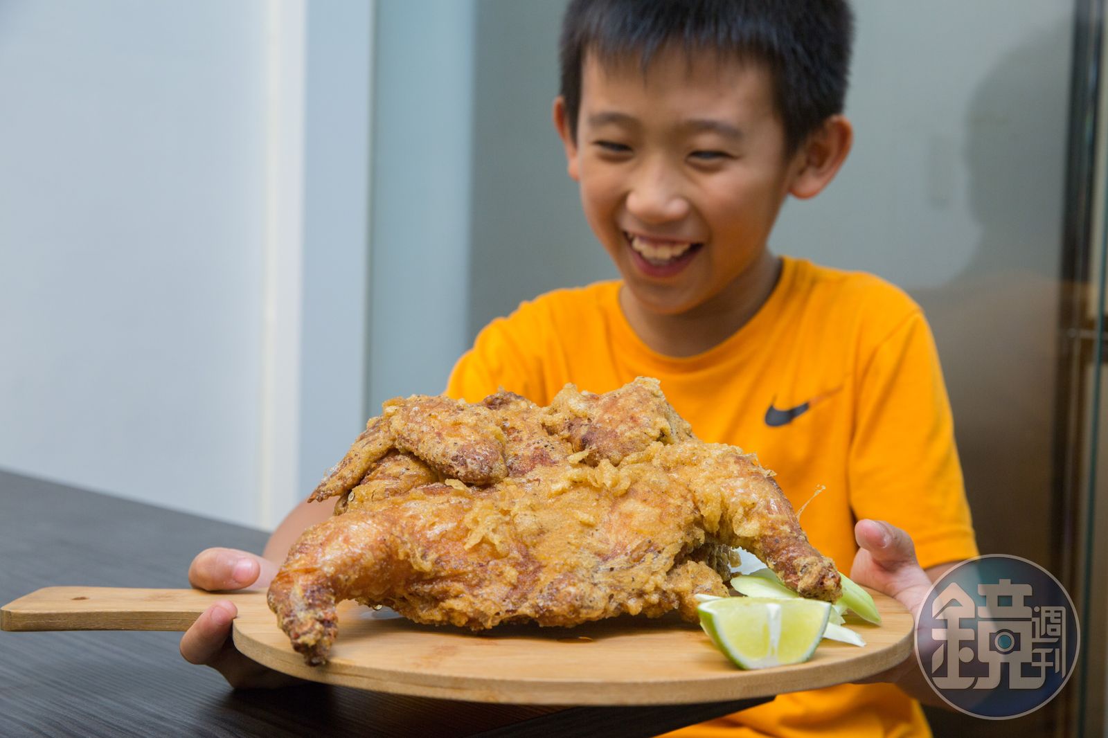 在台灣要吃到烤全雞不難,但想吃到整隻的炸雞,就比較難找了。位在景美捷運站附近的「spyci私宅咖哩炸雞店」就是少數有賣炸全雞的店家,口味還相當獨特,因為馬來西亞籍的老闆余國雄,使用馬來西亞咖哩粉、匈牙利紅椒粉等10幾種香料,醃漬雞肉一整天,裹上荷蘭太白粉後再下油鍋炸至表皮酥黃,同時緊鎖鮮美雞汁,趁熱扒開雞腿,肉汁四竄、雞肉嫩甜味豐,沾著辣香附帶小魚乾的「No.38辣椒醬」,南洋味十足。