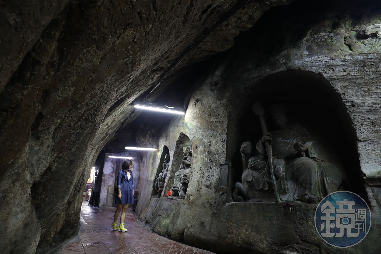 主洞旁有條岩縫岔路,只容1人通行,最窄處還得屈膝貼著岩壁,心跳噗通來到盡頭,洞口豁然開朗,大岩石成了供桌,菩薩微笑矗立眼前,這是參拜道,也是探險之路。