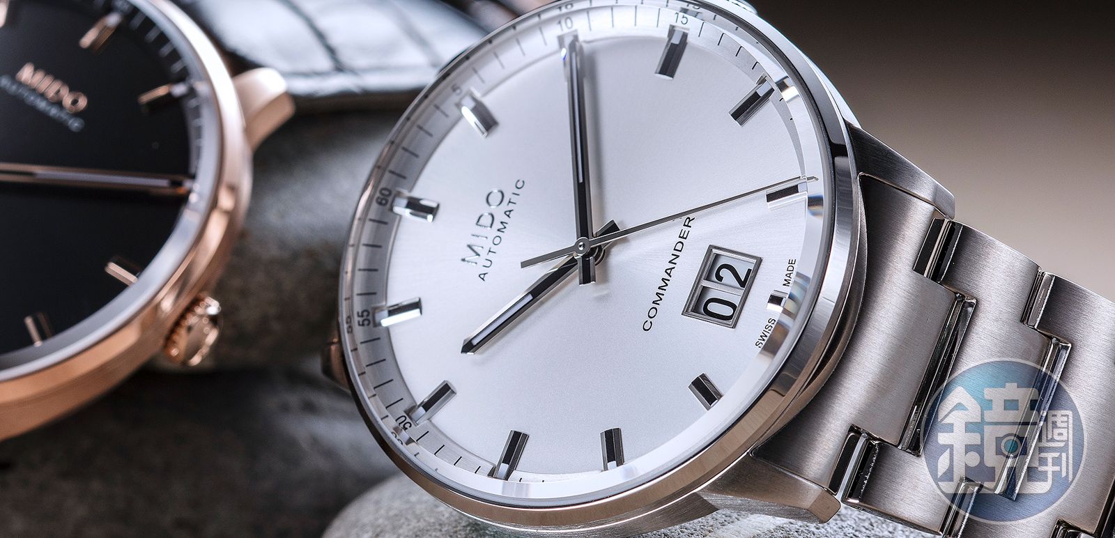 而最新力作是Commander Big Date大日期腕錶。顧名思義,這款產品的重點即是在大日期視窗,一般我們常見的視窗,都是採用一個有1~31數字的日期盤來標示,但大日期視窗是將日期上的十位數與個位數分別拆開、以兩個獨立圓盤來組合出當前日期數字,結構上相對複雜了些,而且就我印象中,中價位機械錶品牌非常少看到這個設計。新的Commander Big Date將大日期顯示開在面盤6點鐘處,有著工整的面盤布局,而這也與Commander的刻度與指針相互呼應,體現美度表由建築概念所延伸來的線條與外型。