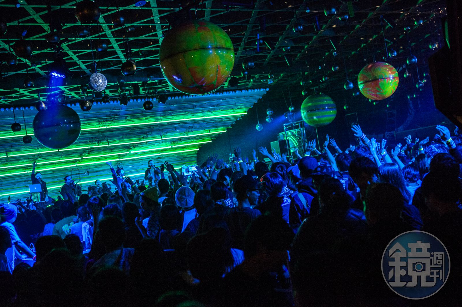 幾小時後,我搖晃著手中的威士忌,還沒來得及理解舞台上小提琴、西裝領帶、木乃伊、太空武士的大亂鬥,舞台已緩緩暗下。一波波規律的掌聲取代了激動的「安可」聲,在如此矜持的熱情中,一隻巨大的綠色獨角獸突然從我身後鑽出,飛馳在銀河間。主唱坐在獸背上,邊高唱最後一曲,邊拋出糖果禮物。我回頭望去,各年齡層的聽眾肩並著肩,有些哼著歌曲,有些眼眶泛淚,簇擁在星系中央觀看謝幕,隨昭和風情的音樂搖晃身體。