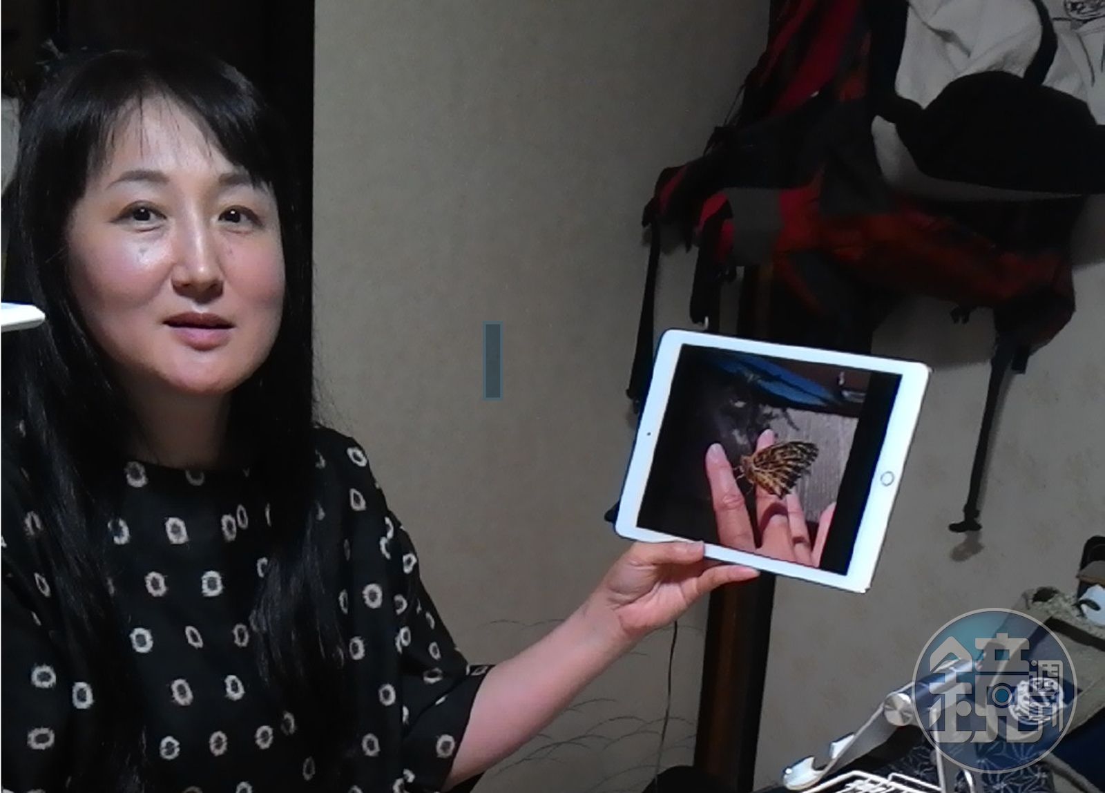 採訪在一進玄關處的房間進行。房間左邊有片大窗戶,淺咖啡牆壁搭配黑色窗框,透過乾淨的玻璃,寂寥的街景、對面空庭略帶黃色的雜草和自家前院幾株綠松,盡攬眼底。窗台擺著幾個貓狀的擺飾品、貝殼,和立式的家族照片。有張照片是東由多加(1945-2000年,劇作家),曾經是她的導師和伴侶。