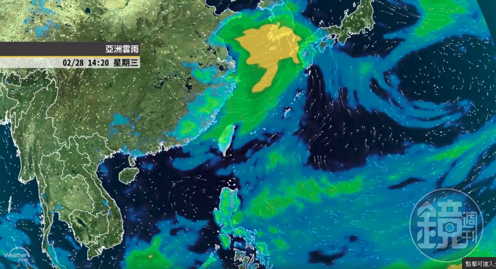 228當天將有一波鋒面通過,彭啟明預估,「全台都有下雨機會」。(翻攝自彭啟明臉書)發布時間:2018.02.26 13:38 臺北時間