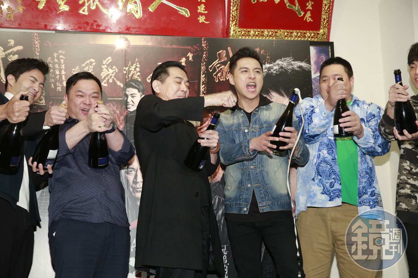 今年2部賀歲國片表現爭氣,《角頭2:王者再起》率先破億,27日晚間舉行慶功宴,監製張威縯率領片中主要演員開香檳,期許票房能往2億邁進。