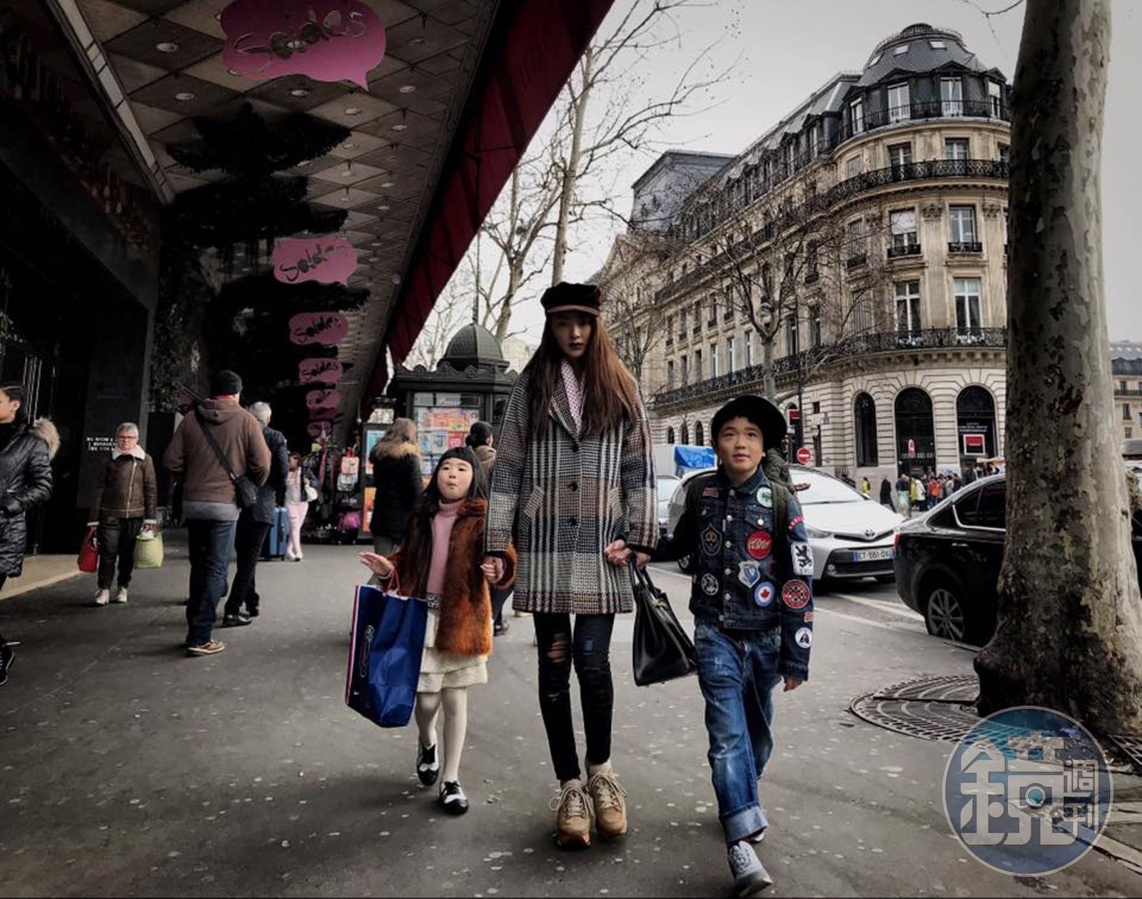 照片中除了po出一雙兒女的可愛模樣,也有老公身影,更重要的是吳速玲的精心美照,她手拎Hermes Birkin包、臉上戴著Dior墨鏡、腳踏Hogan經典厚底鞋、加上KOOKAI格子大衣,充滿歐洲風情。