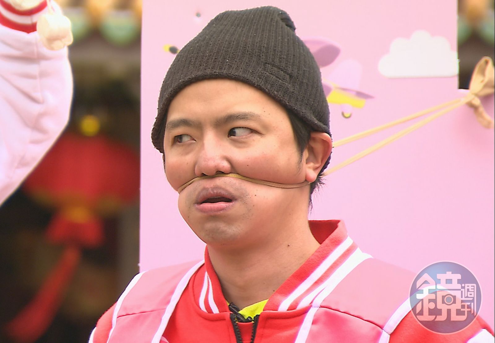 不過小鬼被整到滿臉紅粉、面目全非,又被絲襪勒住臉,還要嘗試吃吊在面前的棉花糖,看來長得越帥,越難逃遊戲摧殘,如此蹂躪顏面的關卡,連張立東也忍不住問小鬼:「你為什麼要來這一集?」