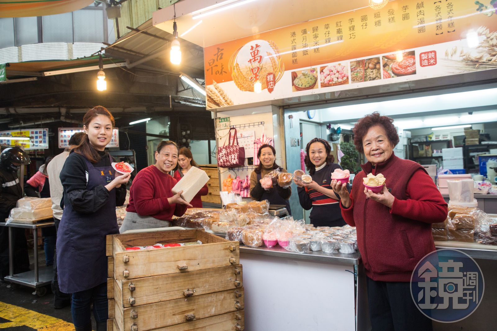 自嘲是急性子的簡美玉,一面招呼客人,一面要助手們趕緊再把產品送來。萬星的淡旺季,隨著民俗節慶變化,她說,像除夕的前一天,「凌晨4點就有人來等,真的,我還沒有來,客人已經在外面等我。」