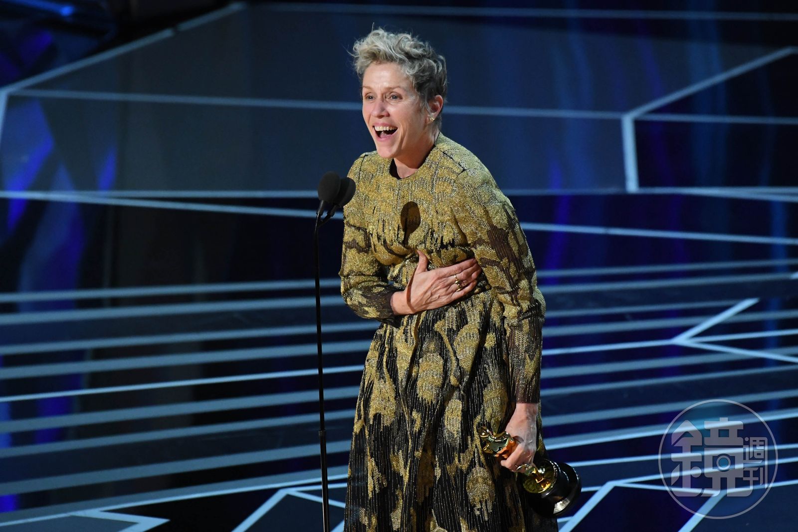 金球獎時她說:「今天到場的所有女性並非來此騙吃騙喝的,她們在此齊聚一堂為女性發聲。」到了演員工會得獎時,她希望能多鼓勵新秀,展現前輩的謙讓大器。而在英國影藝學院獎(英國奧斯卡BAFTA),她稱自己「在合群方面有困難(意指沒有配合穿黑色禮服支持Time’s Up行動),但我希望讓大家知道我完全支持今晚穿黑衣的女性。」第二次高舉小金人,她在台上誠懇地邀請本屆女性入圍者起立接受全場的致敬,並再度表達自己對於女性電影工作者的敬意。幾乎每一次的得獎感言,都能見到這位女星不流俗、不譁眾取寵,而且超級接地氣但又能打動人的一面。
