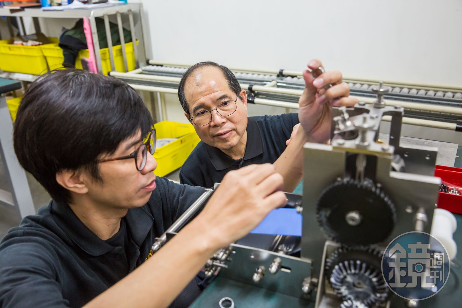 1980年代,他觀察到台灣的食品加工業正萌芽,許多食品廠從日本、美國進口設備,加上大弟攻讀機械,1991年他在萬華西園路設廠,將大陸進口的餃子機拆解再研發改進,「大陸機器用久就發燙,食物會變質,我們一直改,才推出自有品牌。那時機器利潤不錯,是成本價的2倍,我靠這個,10年把債還清。」