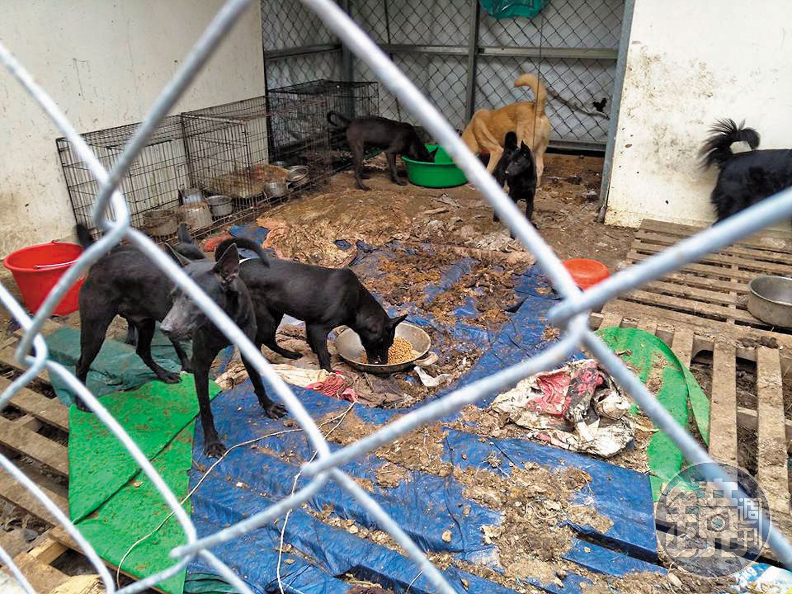 但記者當天親眼所見的,還不是最誇張的狀況。原來志工們在2月底就曾前往救援,沒想到,恐怖的景象令這些愛犬貓的人士當場落淚。所有的狗在垃圾堆、排泄物上活動,更可怕的是,大量狗屍被丟在狗園的房間內,和棉被、雜物堆疊,許多狗屍已經發霉;還有不少狗的內臟、骨頭外露,明顯發生狗吃狗的慘況。一名長期從事犬貓救助工作的志工向本刊說:「這是我看過最像狗地獄的環境!」直指這個狗園的負責人根本「毫無人性」!