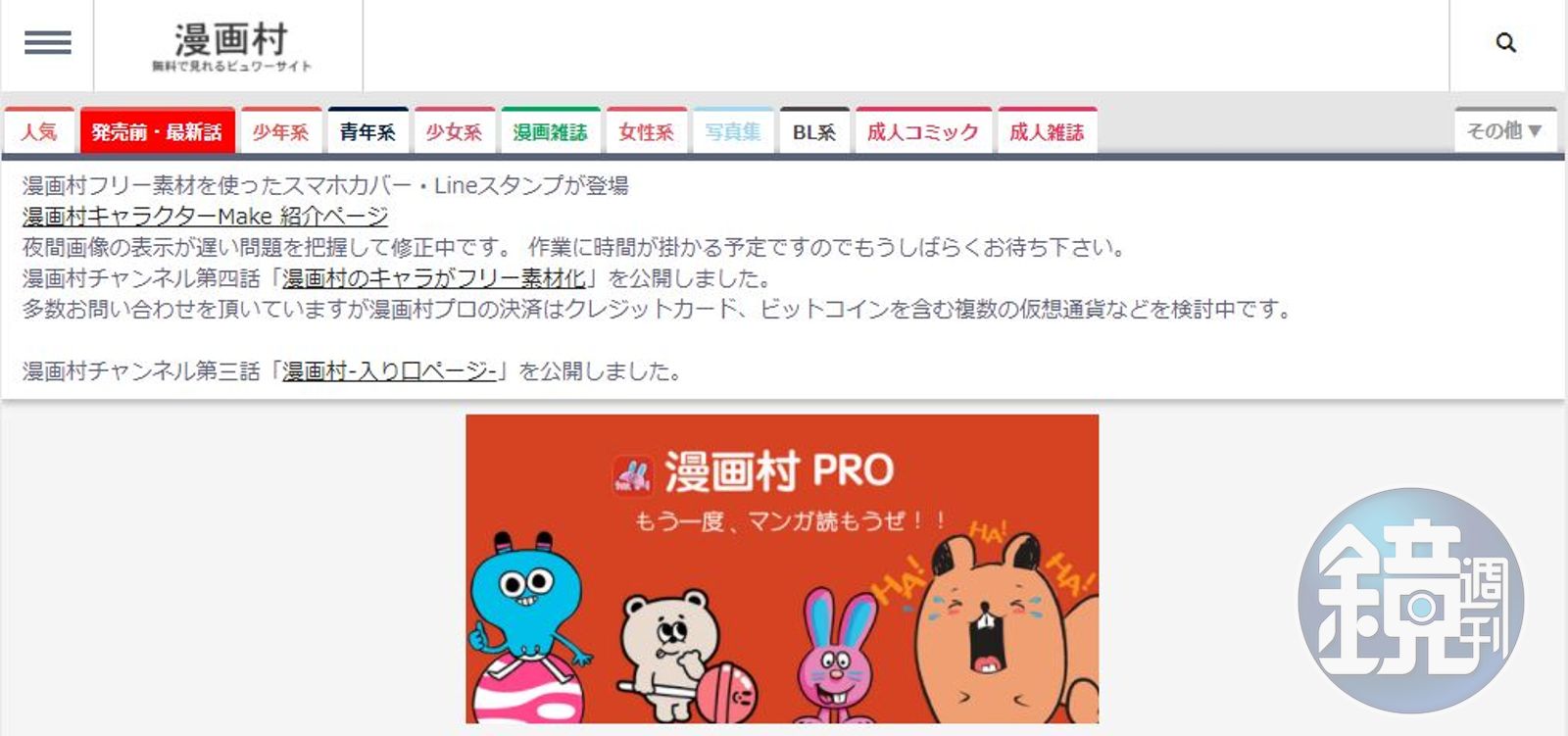 以漫畫命名,但漫畫村的網站上不只有漫畫。陳列大量漫畫、雜誌,還有成人雜誌,用手機閱讀也相當容易,頗對年輕世代的胃口。網站還大辣辣寫上免責聲名:「網站不屬於日本國內的企業或個人,提供的內容是機器自動從網路抓取,並未儲存在『漫畫村』的伺服器。」規避日本《著作權法》懲罰,今年起已經被日本各大報與電視台大肆報導、討論,出版社與漫畫家更有組織地輪番發表聲明,呼籲粉絲不要瀏覽漫畫村,指責該網站的存在危害創作環境。