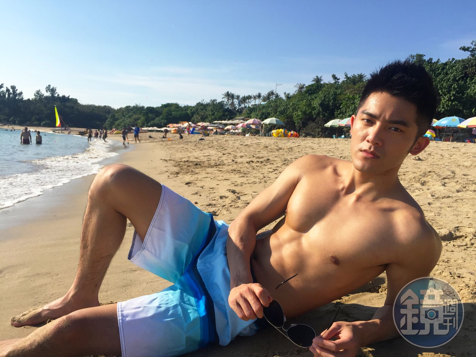 開拍當天只穿一件紅色泳褲,好身材讓女性工作人員直呼「好胸狠」,替他擦防曬油時更是不敢直視,害羞地說這是本劇工作人員的一大福利。